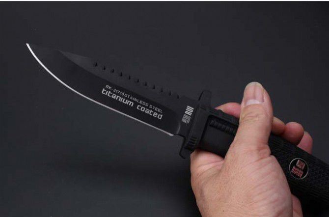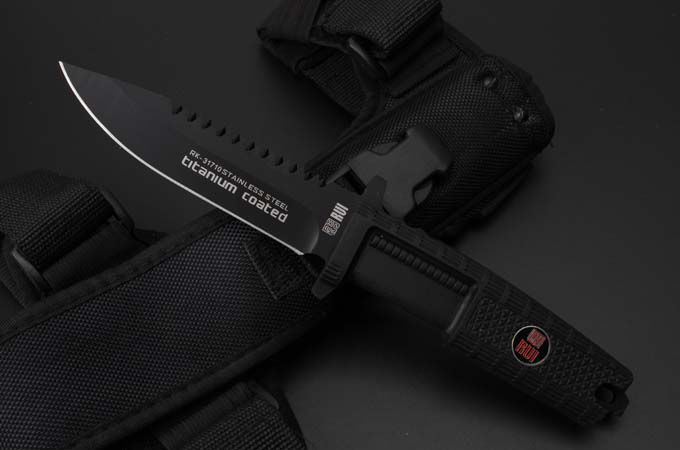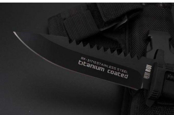 RK31710生存者直刀 全长:25.5CM 刃长:12.4CM 刃厚:0.48CM 刃宽:2.9CM 刃材:8Cr17Mov 硬度:58HRC 柄材热塑性弹性橡胶 刀鞘:黑色尼龙战术绑腿刀鞘 纸盒 重量:433克