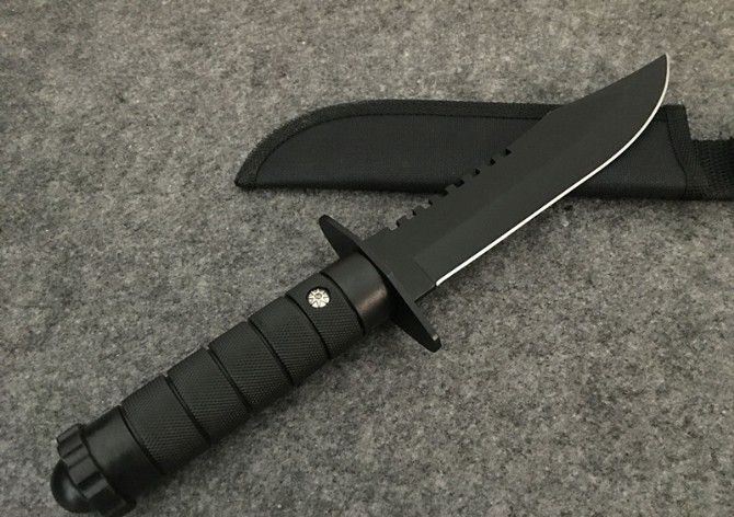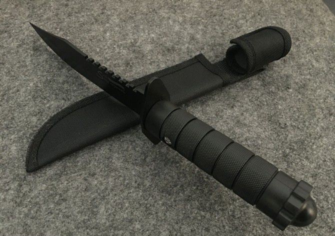 埃斯特雷3号直刀 全长:29cm 刃长:16.7cm 柄长:12.3cm 刀宽:3.3cm 刃厚:3mm 柄厚:1.5cm 钢材:440 硬度:56HRC 重量:300克 柄材:塑胶柄