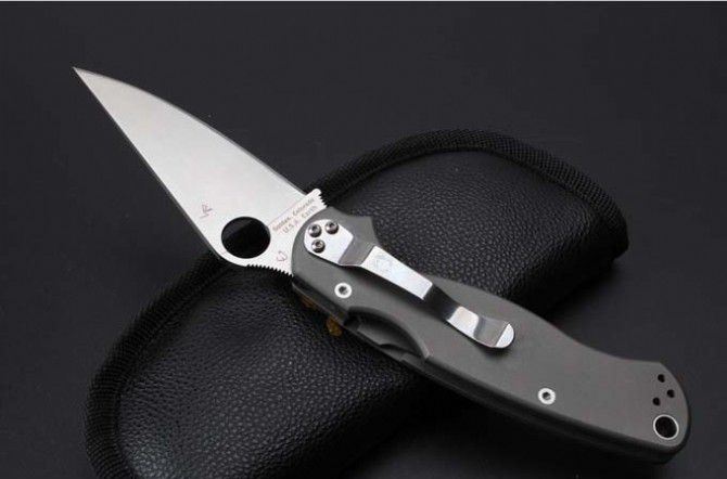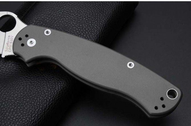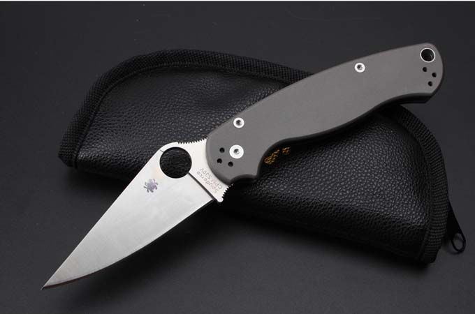 高端蜘蛛C81钛合金轴承折刀 总长:210 mm 刀片长度:80mm 闭合长度:125mm 刀片厚度:3.2 mm 刀片材料:CPM-S30V 刀片表面:喷砂 系统:球轴承系统 手柄材质:TC4钛 硬度:58-60HRC 刀重:131g(钛合金手柄减重) 包装:pu套