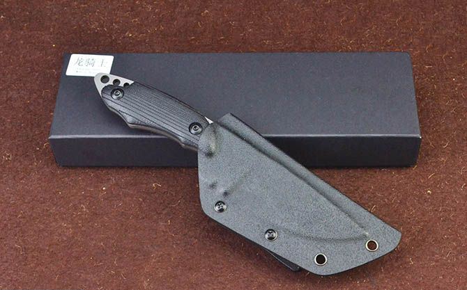 龙骑士战术直刀 全长;19cm 刃长:9cm 柄长:7.5cm 刃厚:0.45cm 刃宽:3cm 刃材:5CR15MOV 柄材:防滑G10柄 硬度:57HRC 重量:300克(含包装) 表面处:灰钛 其他:高档硬纸盒和K鞘