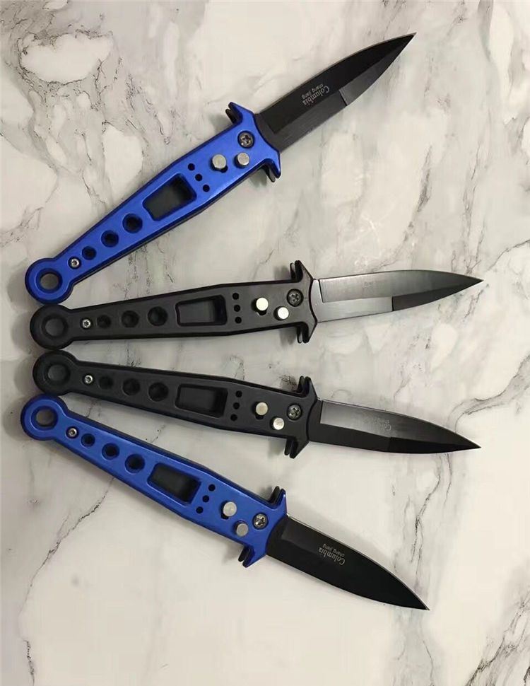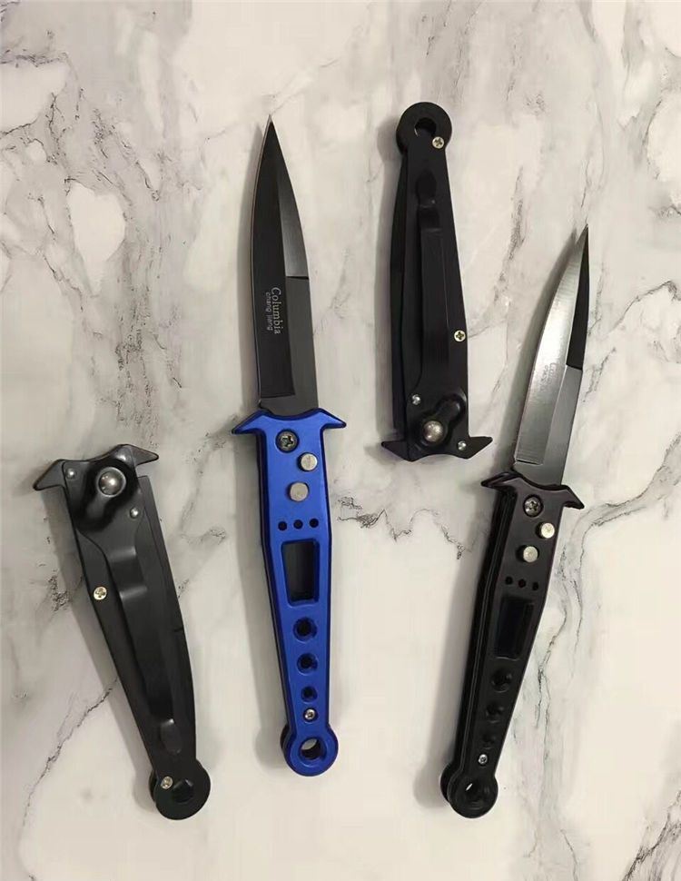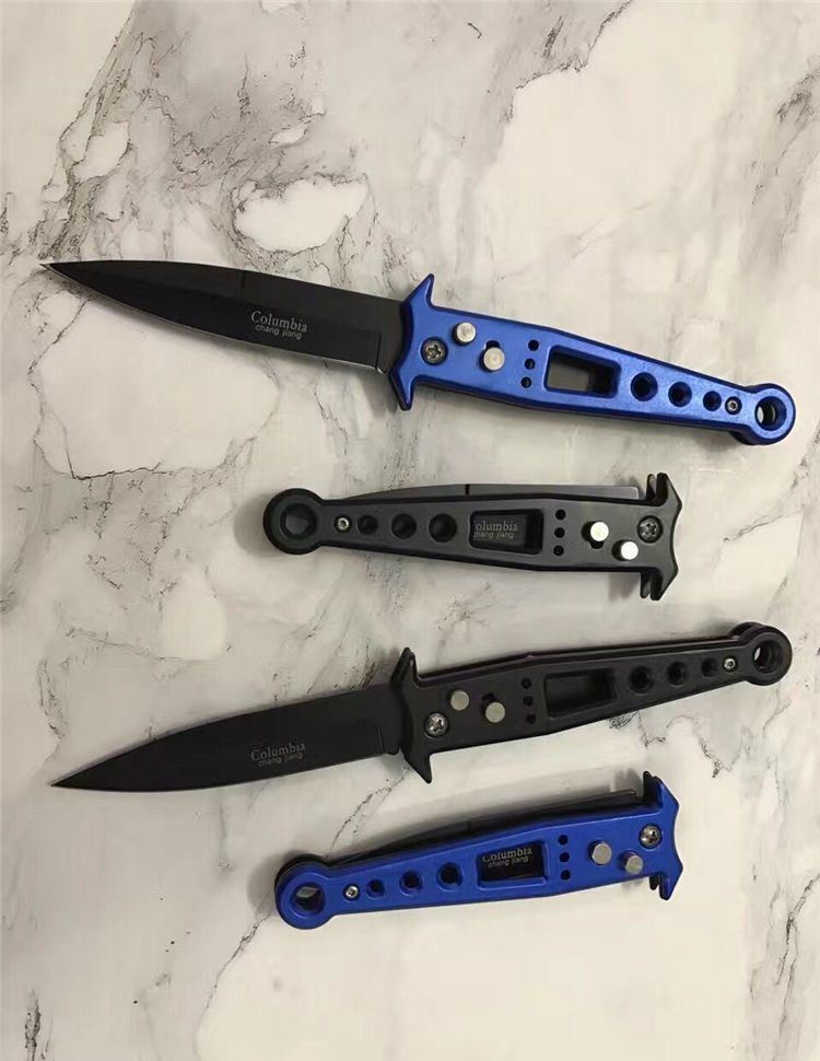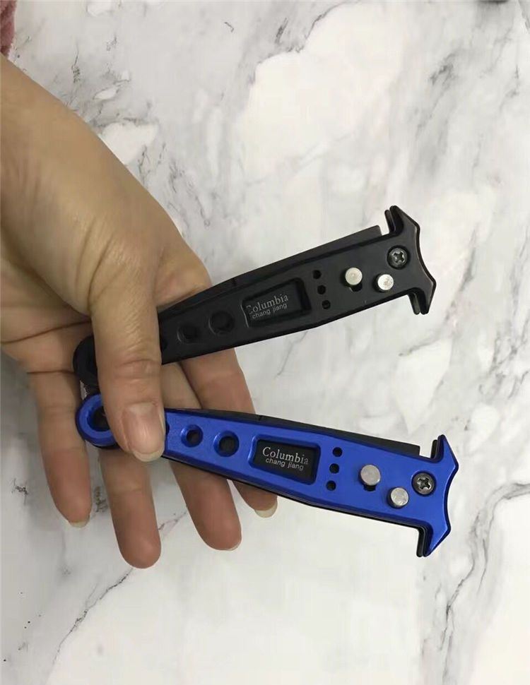 哥伦比亚zy823大脚印跳刀 全长:21.5元 刃长:9.2cm 柄长:11.8cm 刃厚:2mm 重量:850克 表面处理:发黑 锁型:横开弹簧刀