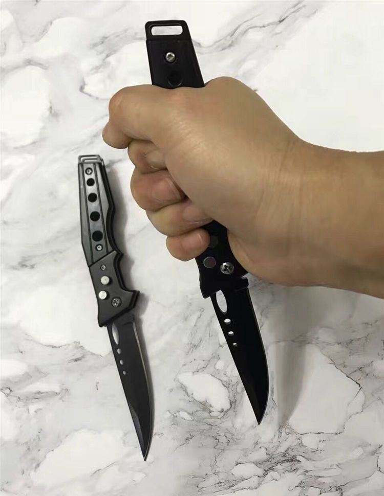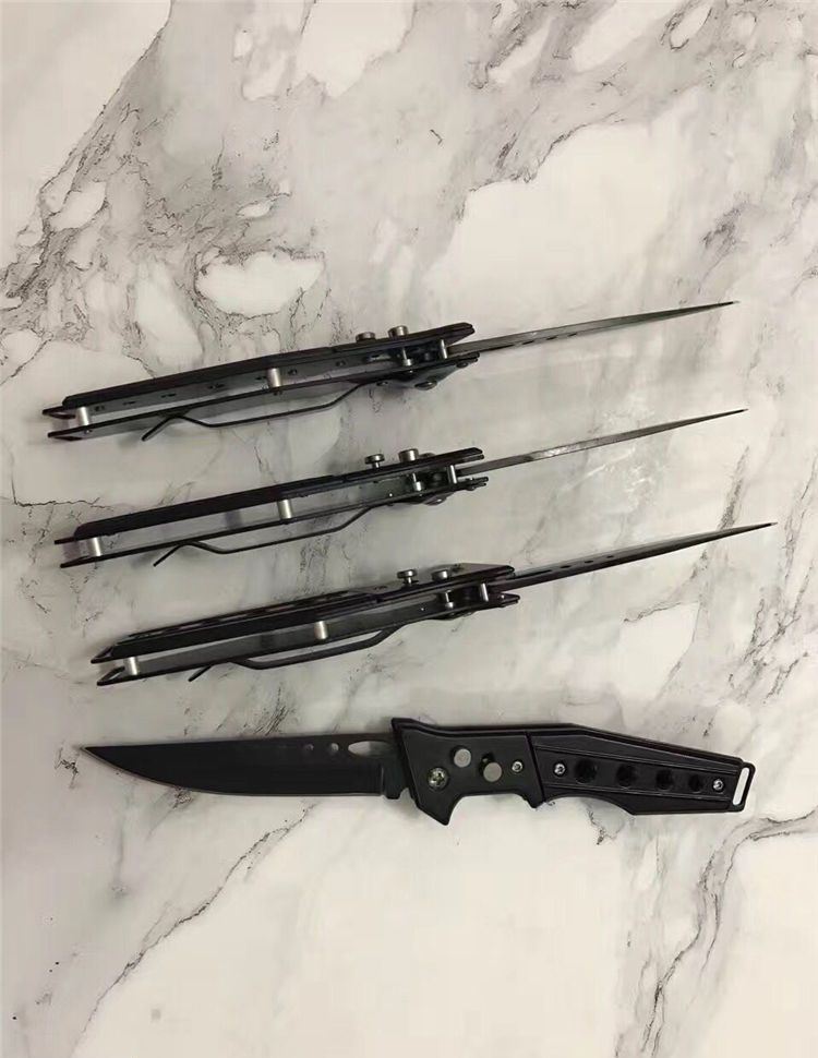 四眼zy820跳刀 全长:21cm 刃长:8.8cm 柄长:12.2cm 刃厚:2mm 重量:100克 表面处理:发黑 锁型:横开弹簧刀