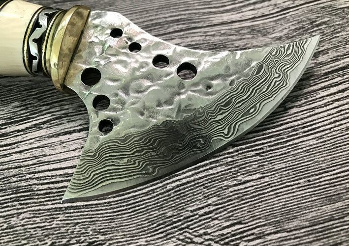 斧刃钢材用料:大马士革钢、80层折叠花纹