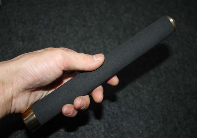 棍体材料:高强度钛合金钢, 硬度大概58HRC(经测试,能吊起一辆汽车以上的重量) 棍把材料:黑色乙烯基合成(防滑材质,不会因流汗潮湿而滑手) 收缩长:23.5CM (便携隐蔽) 甩出长:63.5 CM (常用长度) 毛重:600克(含包装) 表面:钛金 包装:彩盒+尼龙套 其他性能:钢卡式,专门在接口处精密处理,处理后甩出锁定牢靠, 收回时,朝地面垂直一磕就回去了。