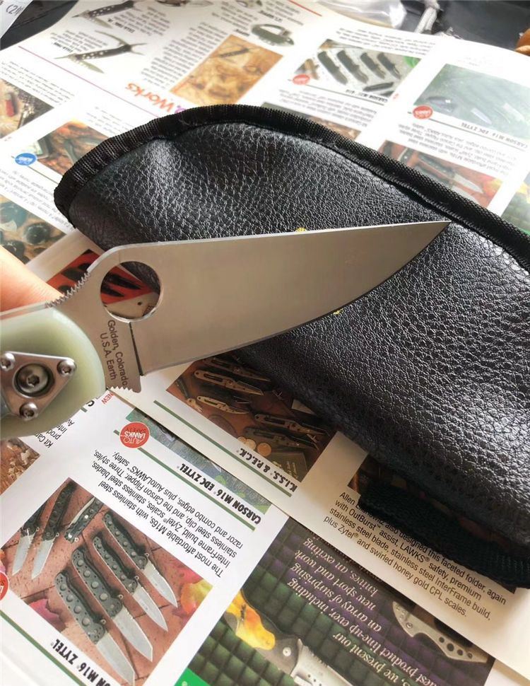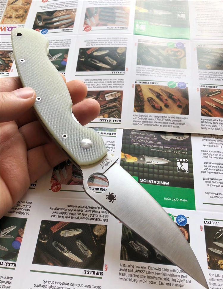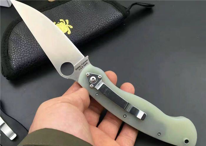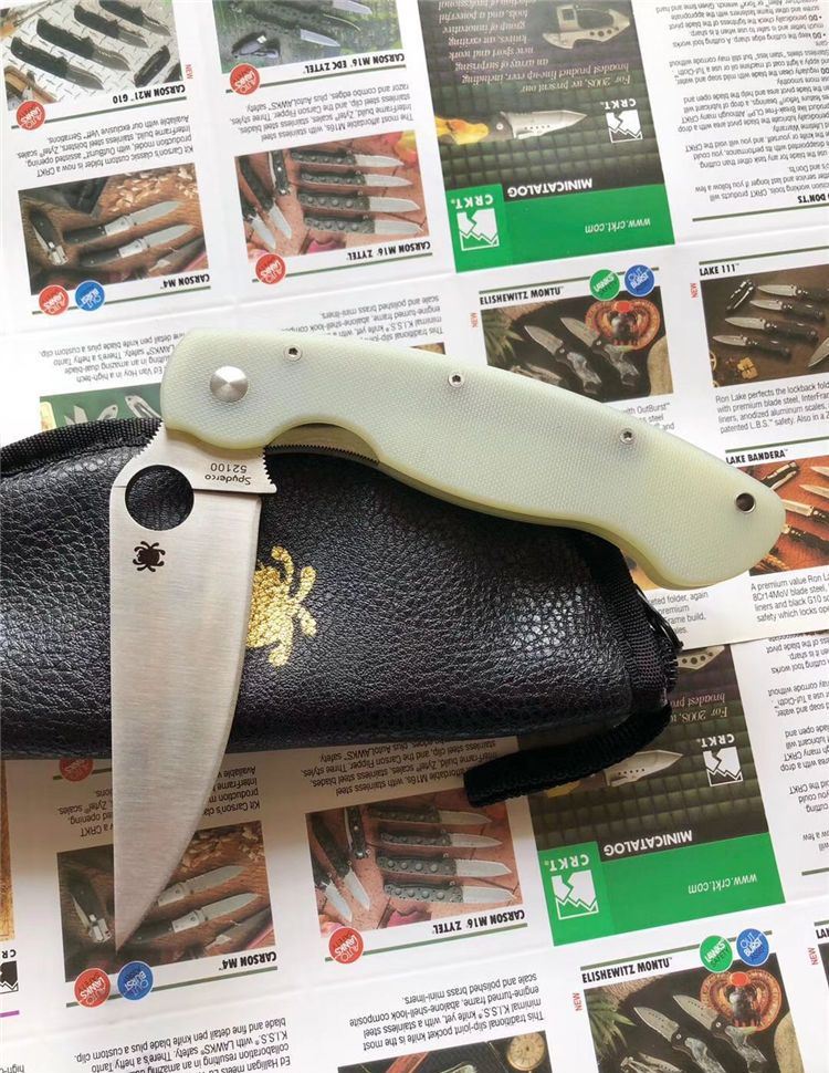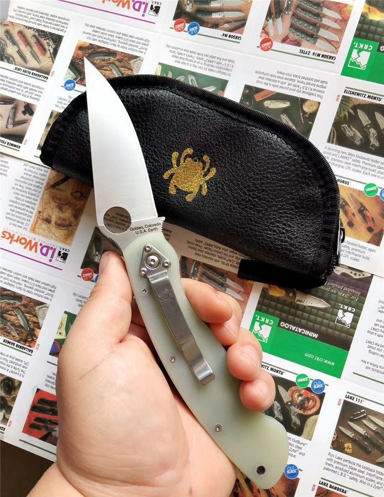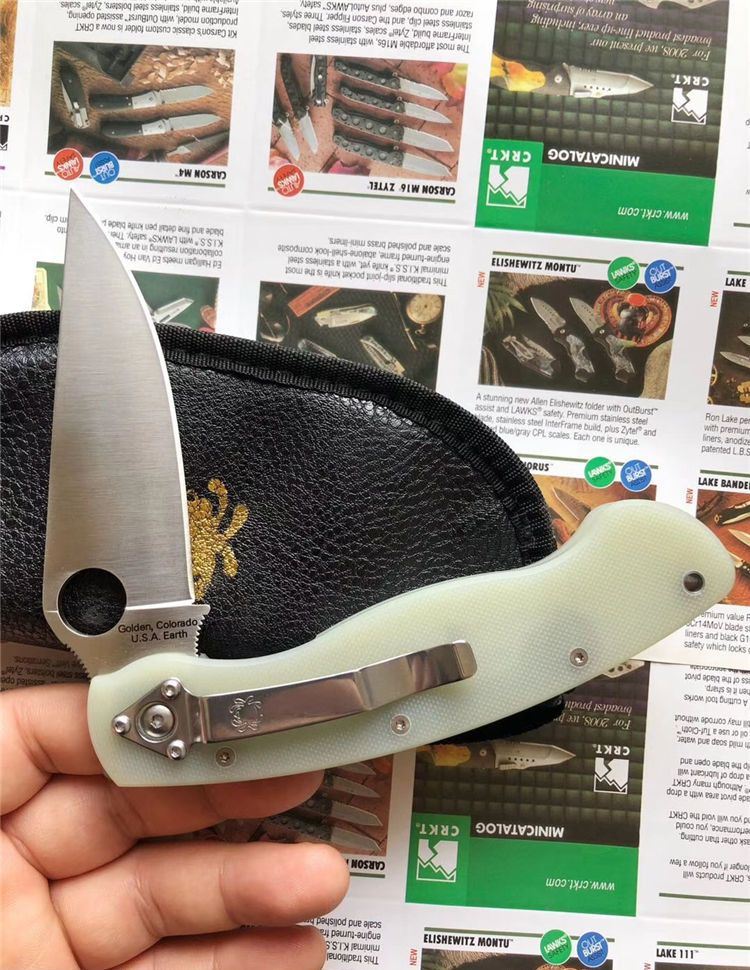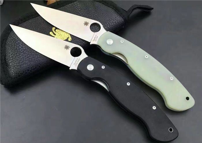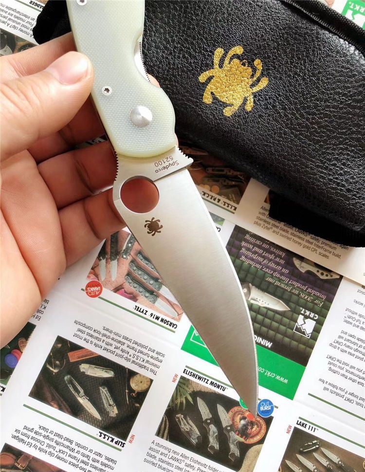 巨力出品蜘蛛C36GM4P GB-D2高性能折刀全刃透明、全刃黑色 全长: 241mm 刃长: 102mm 柄长: 139.7mm 刃宽: 32mm(最宽处) 刃厚: 4mm 刃材: GB-D2 (标准D2钢) 净重: 143g 硬度: 60-61HRC 表面: 砂光 柄材: G10(工业G10定制版,纹理细密) 刀夹: 不锈钢 螺丝: 不锈钢 结构: 线锁 设计: SPYDERCO