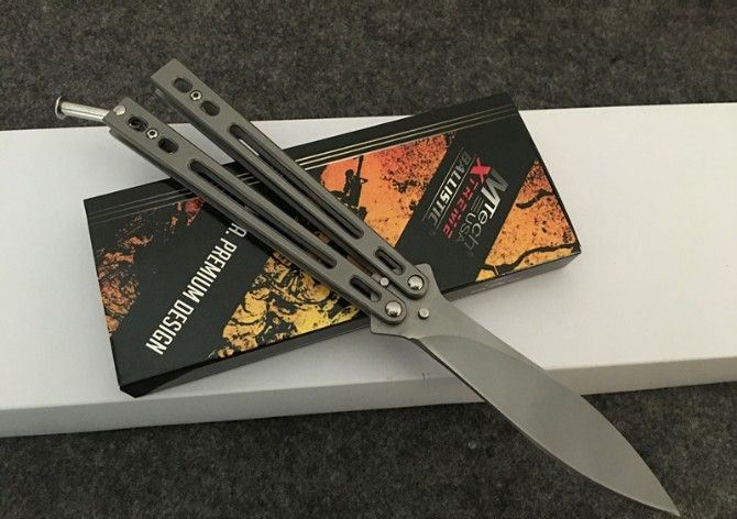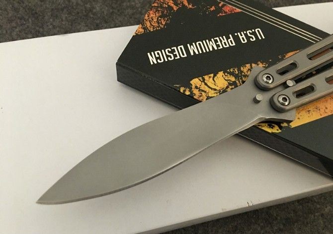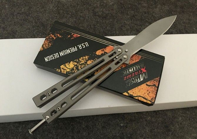 MT战狐镀钛甩刀 全 长:220mm 刃 长:90mm 柄 长:121mm 刃 宽:20mm 刃 厚:2.8mm 刃 材:3Cr13Mov 重 量:171g(含包装) 硬 度:55HRC 表 面:镀钛 柄 材:钢柄 锁 型:甩刀 其 他:配彩盒