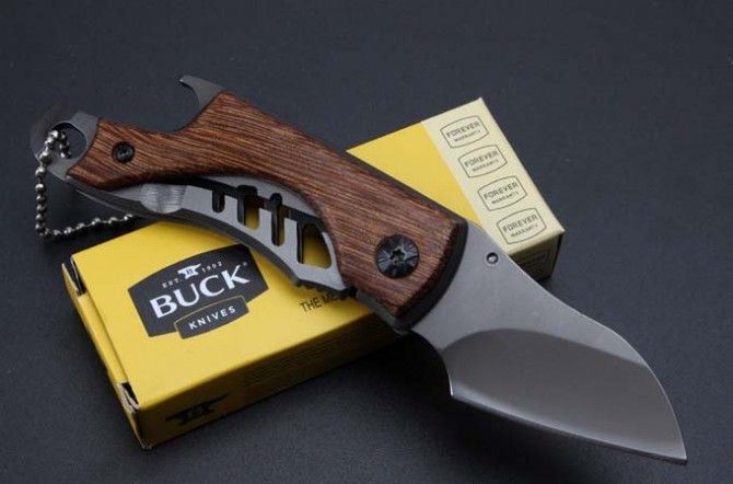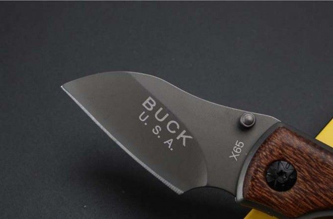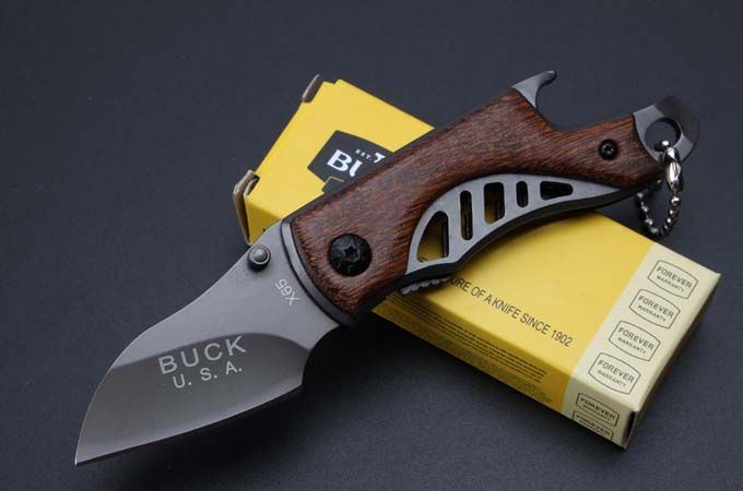 巴克X65小折刀 全 长:140mm 刃 长:53mm 柄 长:88mm 刃 宽:25mm 刃 厚:2.9mm 刃 材:5Cr13 重 量:89g(含包装) 硬 度:57HRC 表 面:镀钛 柄 材:钢+鸡翅木 锁 型:线锁 其 他:配纸盒 功 能:自带开瓶器和一字批,适合户外应急