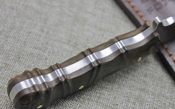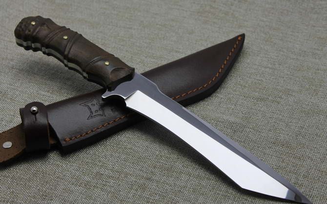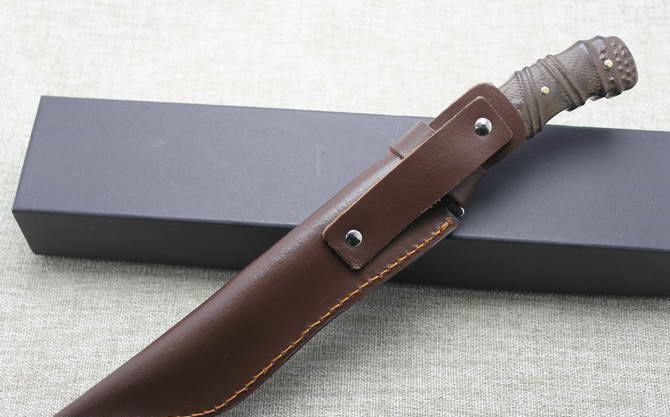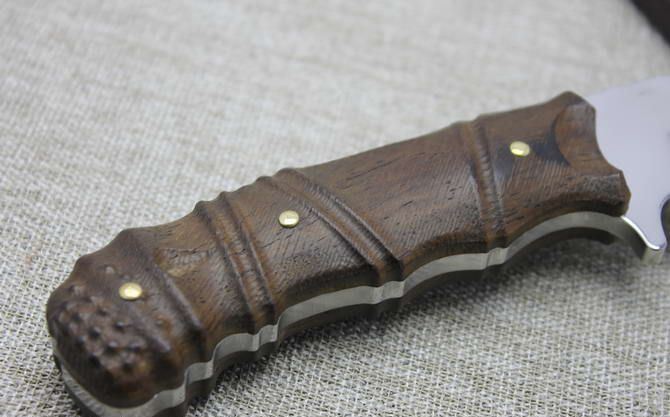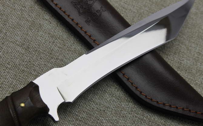 千年狐狸镜光普装盒版 全 长:30CM 刃 长:18.5CM 柄 长:11.5CM 刃 材:7Cr17 硬 度:58HRC 刃 厚:0.59CM 刃 宽:3.3CM (最宽处) 涂 层:镜光 柄 材:黑檀木(手工雕刻) 刀 鞘:皮套 重 量:780g(含包装) 其 他:非一般的手工!