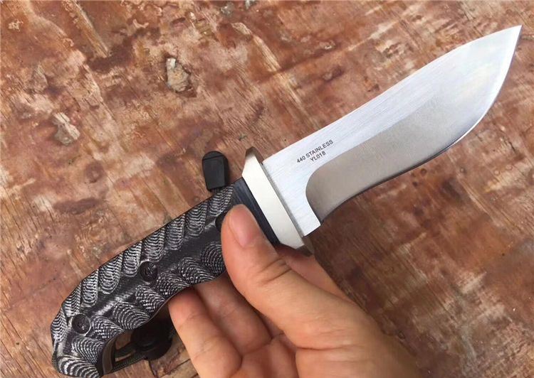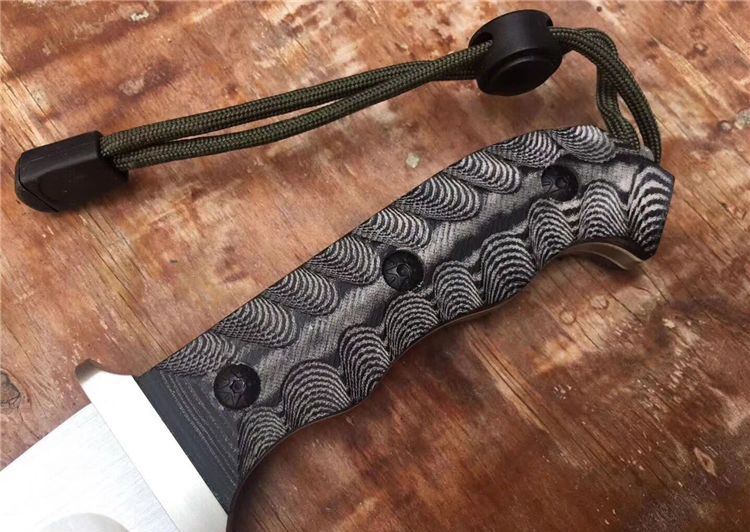 伊兰爬行者2号小直刀钢头版 全长:22.5CM 刃长:10.5CM 柄长:11.5CM 刃材:7Cr17 硬度:58HRC 刃厚:0.38CM 刃宽:2.8CM (最宽处) 涂层:拉砂 柄材:钢头+G10 刀鞘:皮套 重量:305g(含包装)