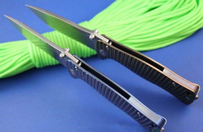 精仿Lion Steel钢狮折刀 全 长: 215mm 刀 长: 97mm 闭合长度: 118mm 刃 材: D2 硬 度: 60-61HRC 表 面: 石洗 刃 厚: 4.0mm 柄 长: 118mm 柄 材: 钛合金 锁 型: 线锁