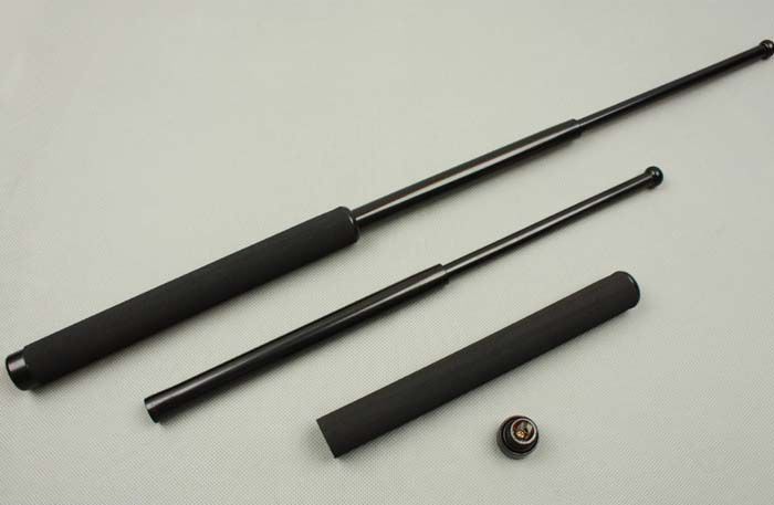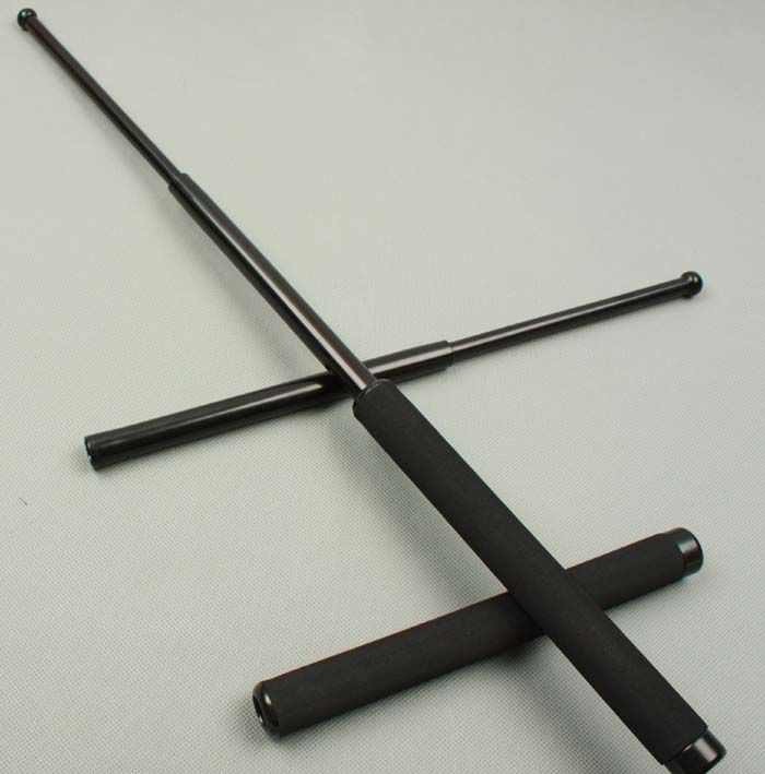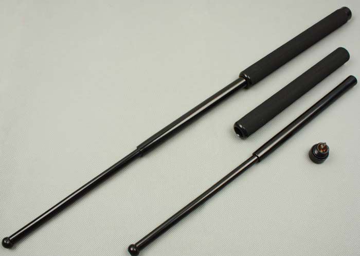 台湾25寸杀破狼甩棍(黑色) 展开长:63cm 收起长:24cm 管壁的厚度是2毫米 材质:45号钢 淬火 颜色:黑色 重量:670G
