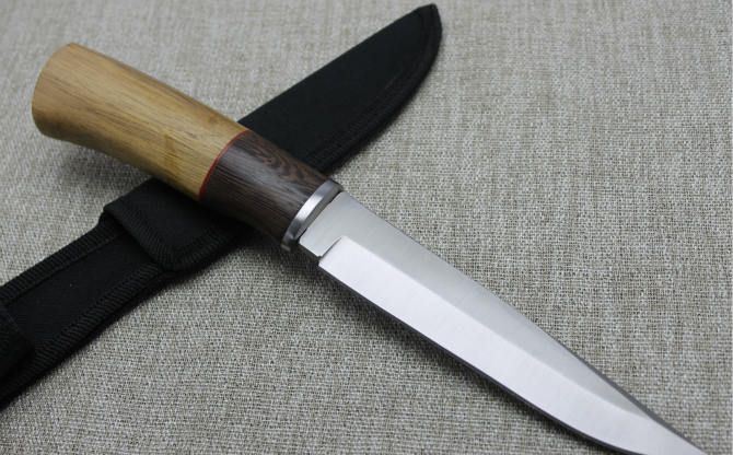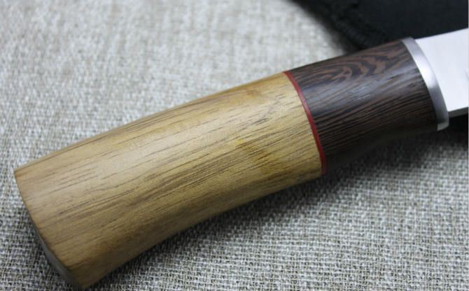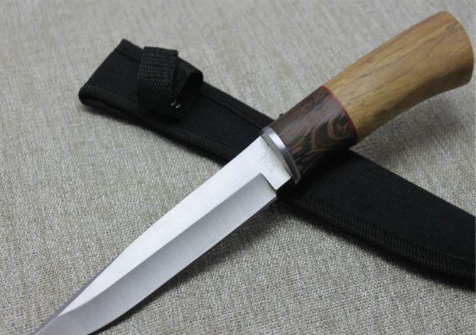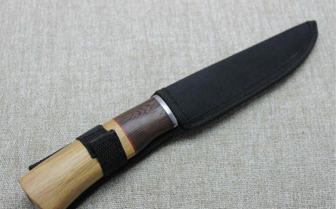 大拇指双花色彩木直刀 全长:27cm 刃长:14cm 柄长:12cm 刃厚:4mm 刃宽:2.8cm 刃材:3Cr13 柄材:白木+鸡翅木 硬度:55HRC 净重:220克 表面处理:砂光