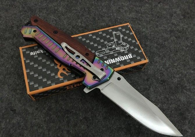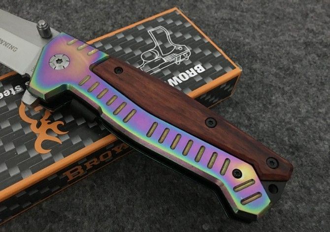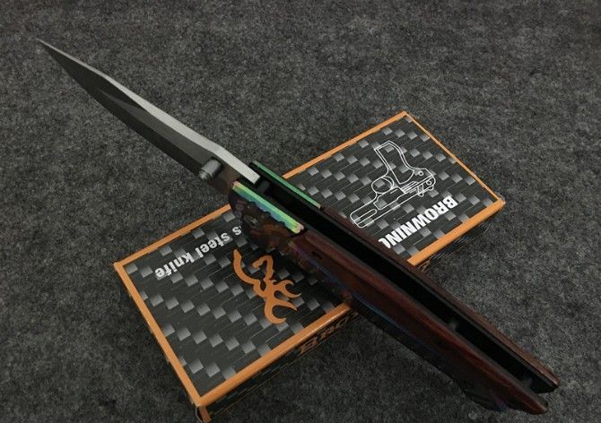 勃朗宁DA94折刀 全 长:22cm 刃 长:9.2cm 柄 长:12.5cm 刃 宽:2.8cm 刃 厚:4.0mm 刃 材:440 重 量:179g(含包装) 硬 度:58HRC 表 面:沙光 柄 材:钢头+酸枝木 锁 型:侧锁 其 他:彩盒