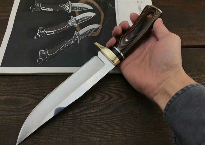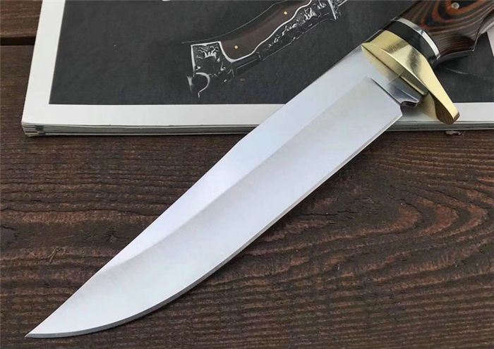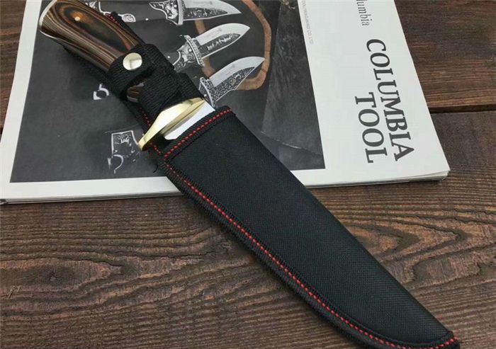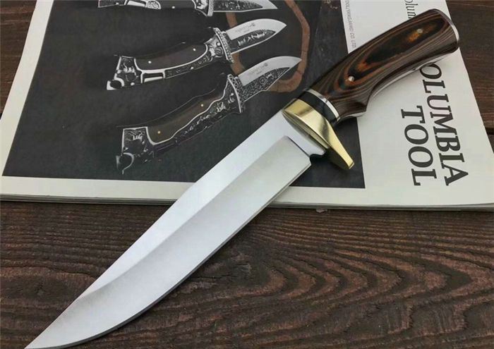 哥伦比亚SA39战术直刀 全 长:31.5cm 刃 长:18cm 刃 宽:3.6cm(最宽处) 刃 厚:3.9mm 柄 长:13.5cm 表 面:拉丝+镜光 刃 材:3CR13 硬 度:57HRC 柄 材:双铜头雕花+进口彩木 重 量:376克(含包装) 包 装:尼龙套