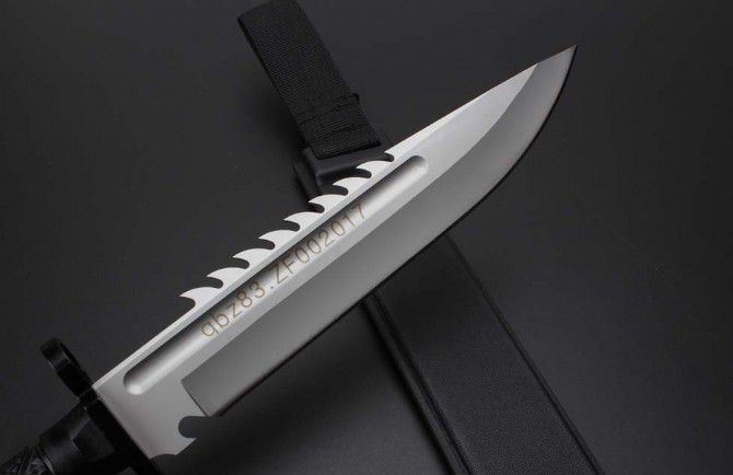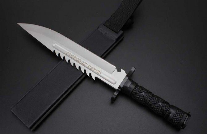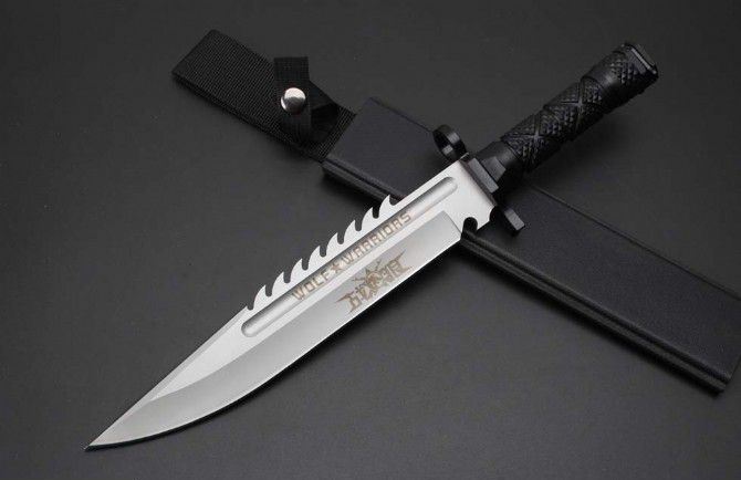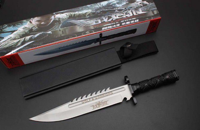 尖头虎牙战狼战狼三号砂光版 全 长:38.5CM 刃 长:25.6CM 柄 长:11.8CM 刃 宽:4.CM(最大宽度) 刀 厚:0.55CM 刃 面:砂光 毛 重:885克(含k鞘) 钢 材:7CR15 硬 度:57 刀 柄:绝缘强化塑胶