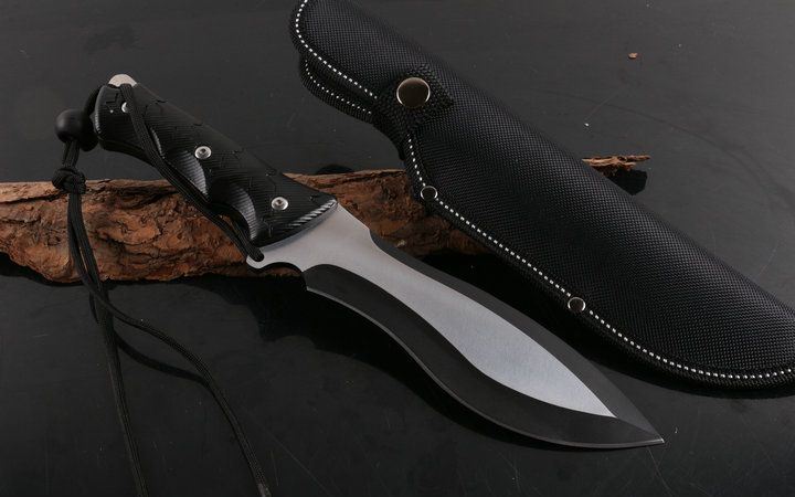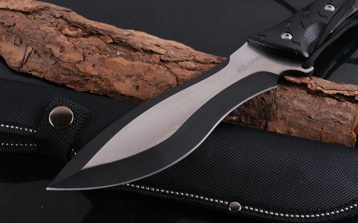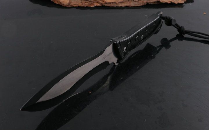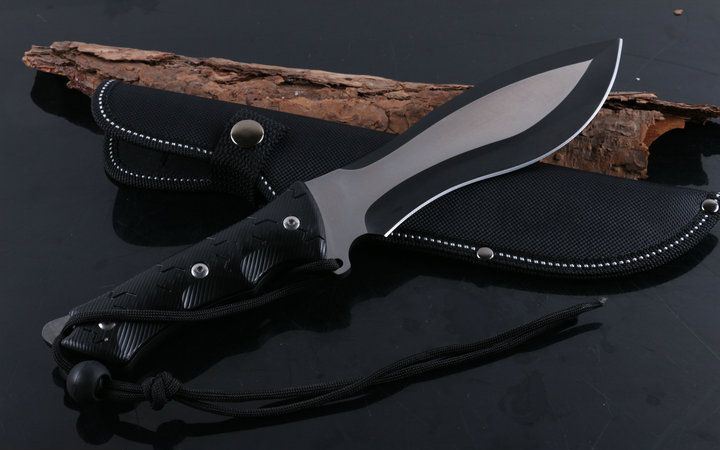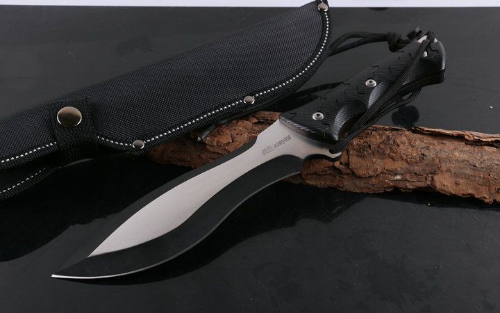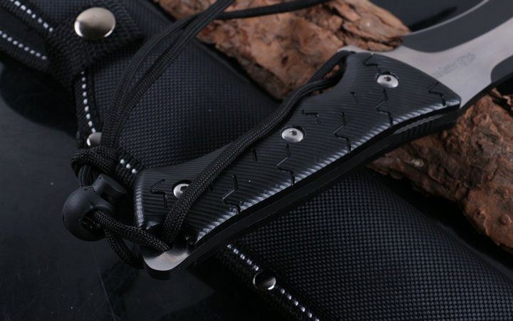 S038C复仇者直刀 全 长:298mm 刃 长:172mm 柄 长:125mm 刃 宽:49mm 刃 厚:4.2mm 刃 材:7Cr13Wov 重 量:475g(含刀套) 硬 度:56HRC 表 面:镭射光面 柄 材:尼龙玻纤手柄+防甩手绳 锁 型:定锁 其 他:配牛津套+纸盒
