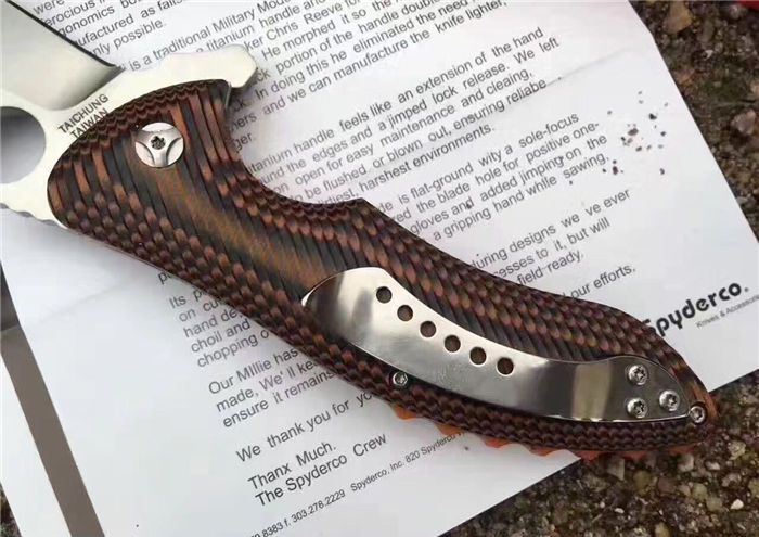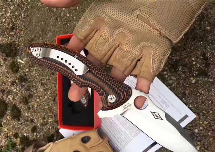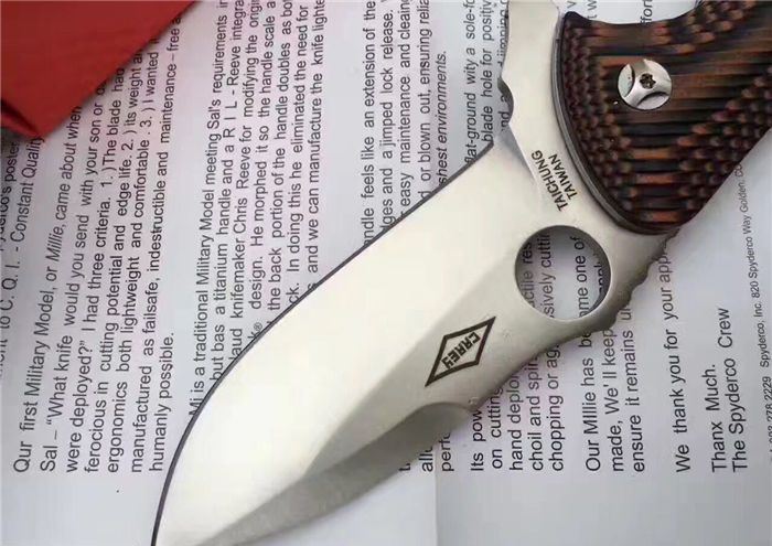 蜘蛛王c187轴承折刀蛇纹 全 长:210mm 刃 长:85mm 柄 长:125mm 刃 宽:34mm 刃 厚:4.0mm 刃 材:7Cr15Mov 重 量:240g(含包装) 硬 度:57HRC 表 面:砂光 柄 材:G10 锁 型:线锁 其 他:配彩盒