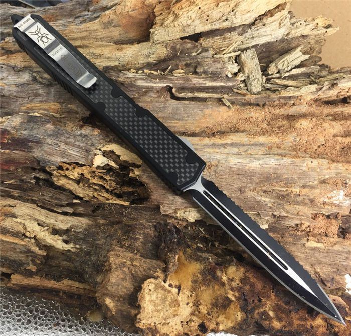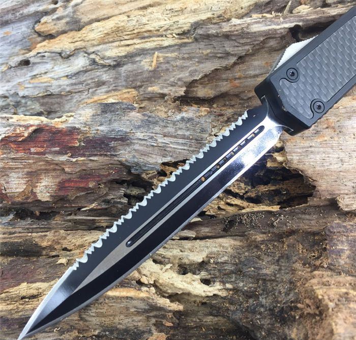 Makora II 圣蚂蚁II代,修长样式使得其具有极强的穿刺能力。手柄上采用T6061航空铝材,高级亚光碳纤维面板,整刀的重量只有125克。任何一个有过作战经验的人都知道战争中减轻不必要的重量可以提高灵活作战机动性,双刃款刀刃中间镂空血槽美观的同时,从战术上讲又减轻了刀刃的重量,同时便于穿刺机体造成粘连,因 为当机体遭遇外来硬物的进入,肌肉的力量足以屏断一柄刺刀。外贸款式,机加工几乎都来自CNC数控车床,所有配件精确到位