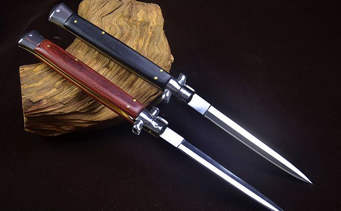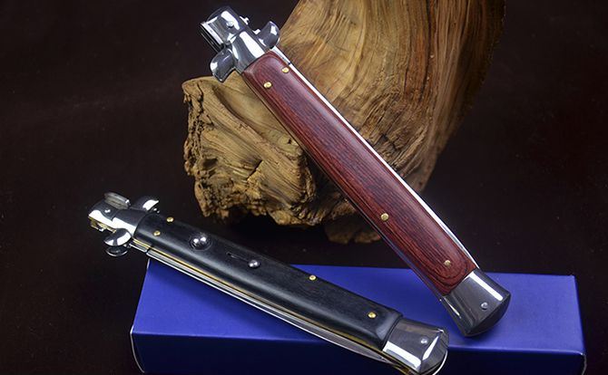 13寸黑手党侧跳刀彩木柄