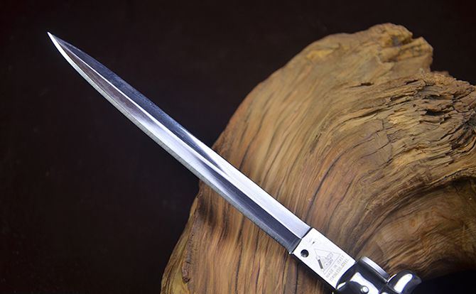 13寸黑手党侧跳刀彩木柄 全 长:33cm 刃 长:14.8cm 折叠长:18cm 刃 宽:1.5cm(最宽处) 刃 厚:3.0mm 刃 材:440C 刀 柄:整块天然彩木 表 面:镜光 开刀方式:弹簧 重 量:215克 AB款13英寸意大利黑手党使用的经典刀具-赌徒跳刀,13英寸(33CM)特长款,彩木柄的黑手党侧跳,出刀迅速,锁定稳固,具有超强的穿刺力!带有保险装置,刀护手处暗藏闭合开关,别具把玩性,意大利老牌AB商标,功能性完工度不错,满足把玩和收藏的需要