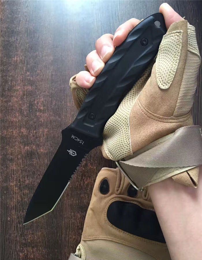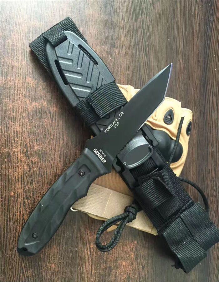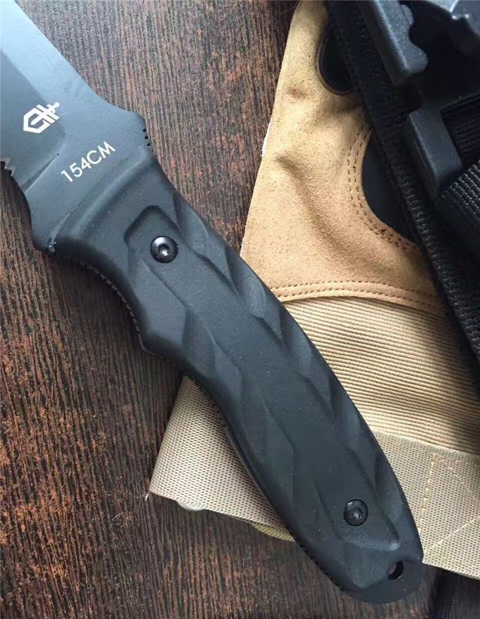 戈博Gerber154生存直刀 全长:22CM 刃材:S30V 刃长:9.8 CM 柄长:11CM 刃厚:0.30 CM 硬度:58HRC 柄材:玻璃纤维强化尼龙防滑橡胶 附件:ABS鞘,彩盒