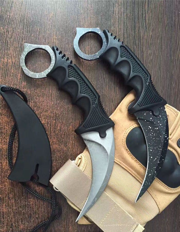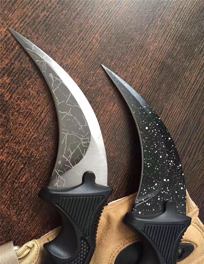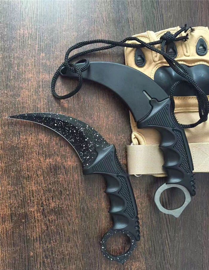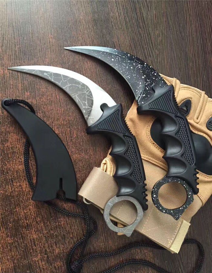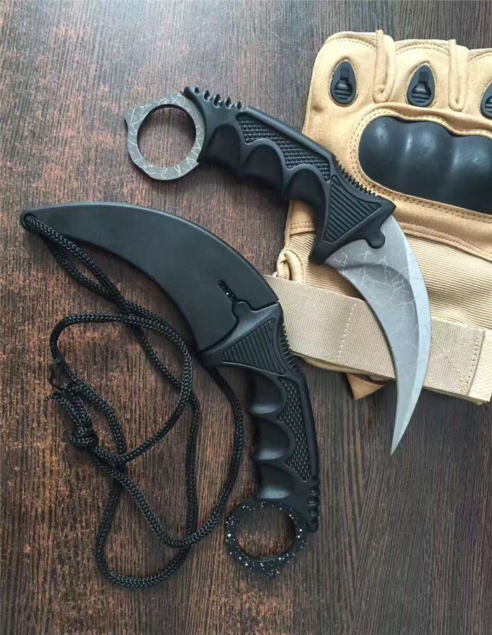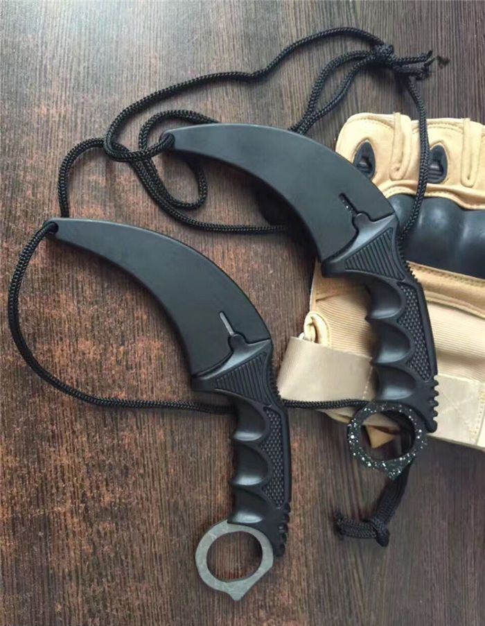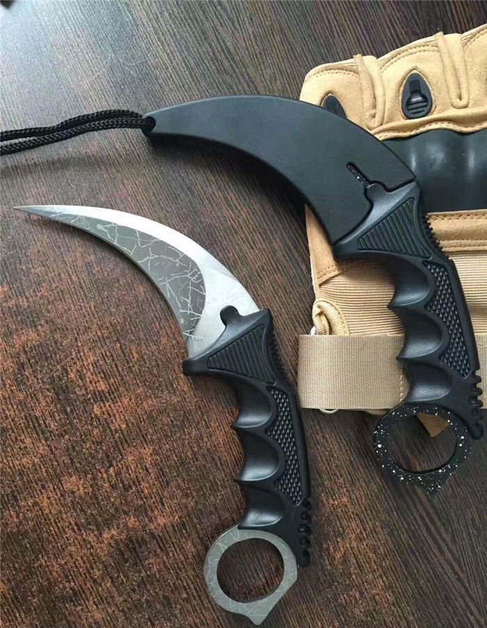 出口CS爪刀 全长:21CM 刃长:9.5CM 刃厚:0.3CM 刃材:440 刀鞘:ABS 重量:137克 刀锋款式,尾部有撞击锤,可以直接当项链饰物挂脖子上