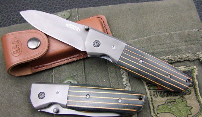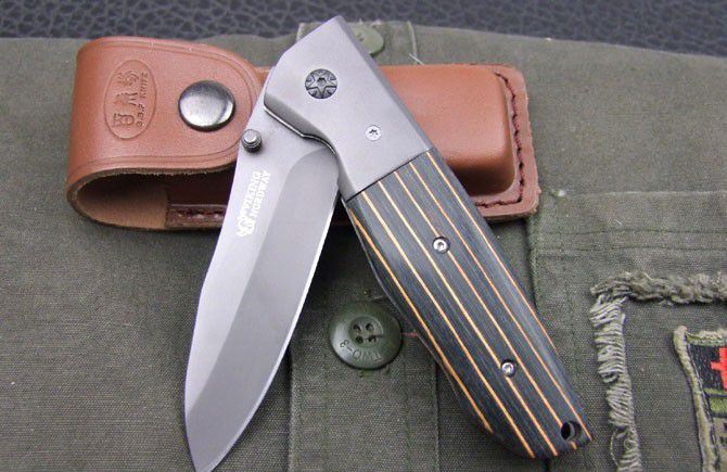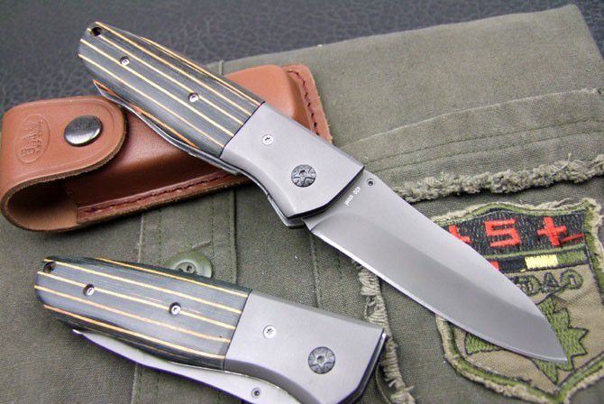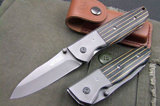 蝴蝶BANCHMADE958战术折刀 全长:20.8cm 刃长:8.7cm 刃厚:2.8mm 刃材:440C 硬度:58HRC 表面:钛离子 柄材:米卡塔 净重:169g 锁定:线锁