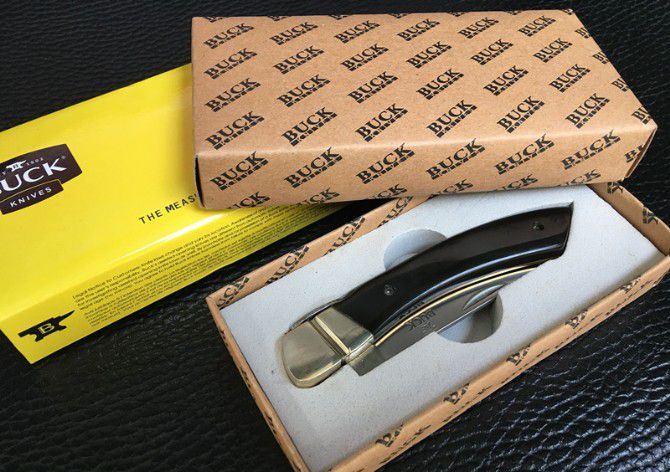巴克BUCK鑫刃III黑牛角+白铜折刀