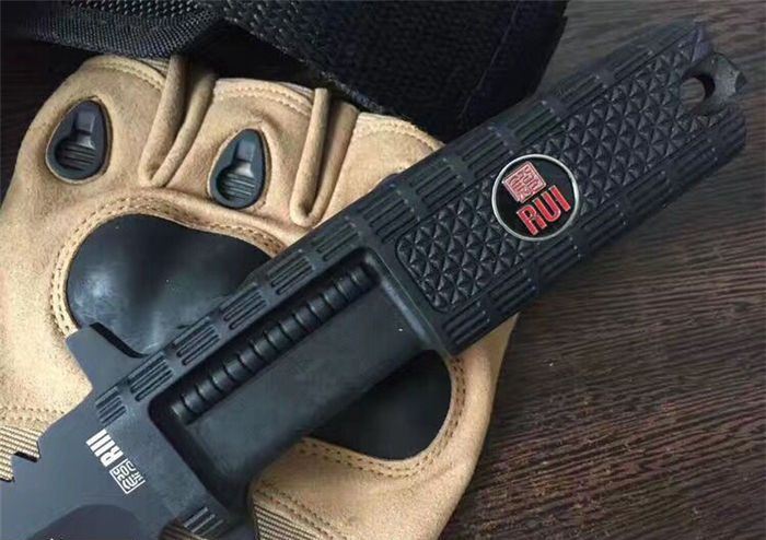 RK红头绑腿生存者直刀 刃材:8Cr17Mov 全长:25.5CM 刃长:12.4CM 刃厚:0.48CM 刃宽:2.9CM 硬度:58HRC 柄材:热塑性弹性橡胶 刀鞘:黑色尼龙战术绑腿刀鞘 纸盒 重量:433克