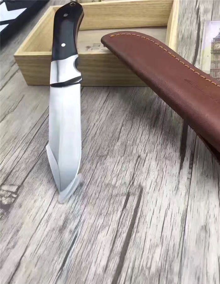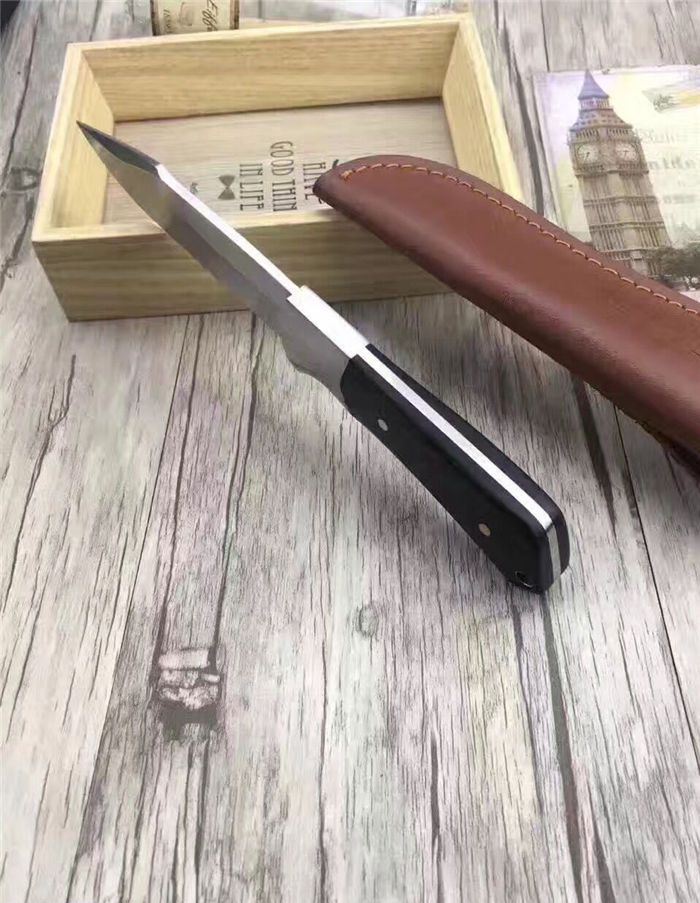 斗战神匕首 全 长:28.5cm 刃 长:16cm 柄 长:12.5cm 刃 宽:23mm 刃 厚:3.2mm 刃 材:优质8铬钢 重 量:274g(含包装) 硬 度:58-59HRC 以上 表 面:砂光 柄 材:钢一体柄+黑檀木 锁 型:定锁 其 他:配牛皮套
