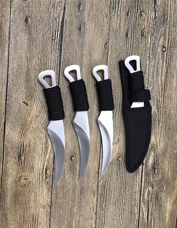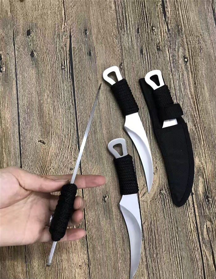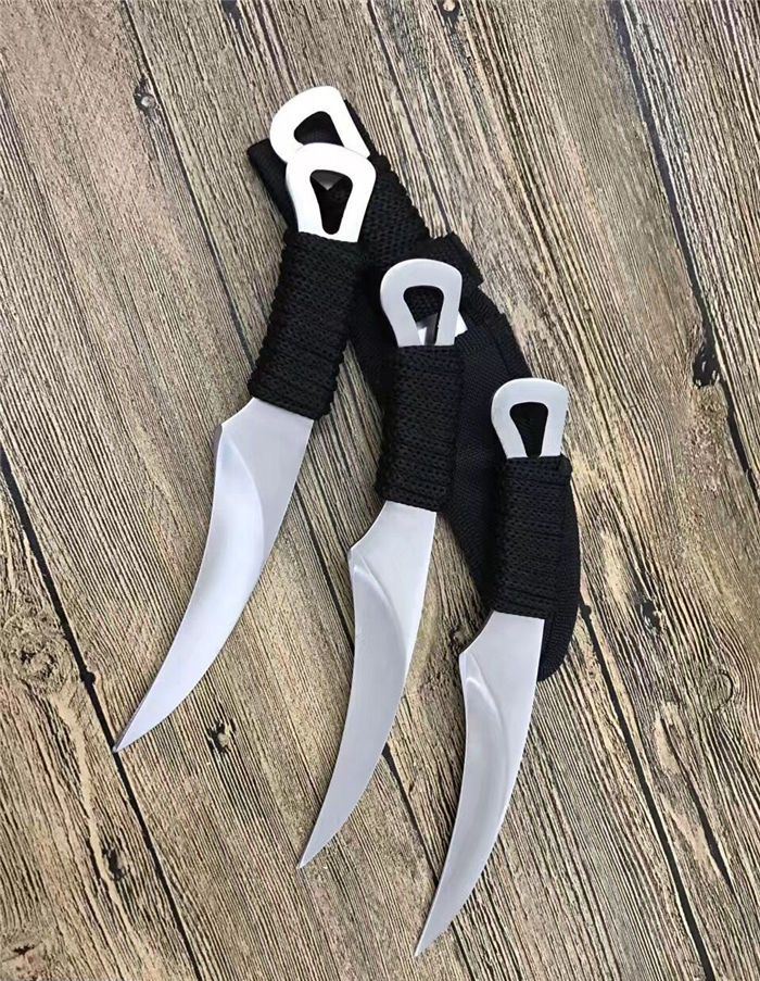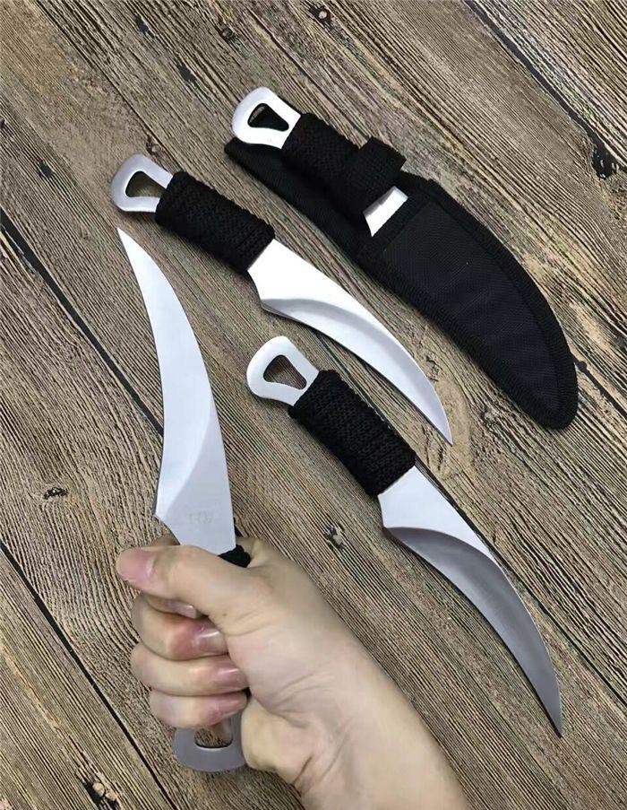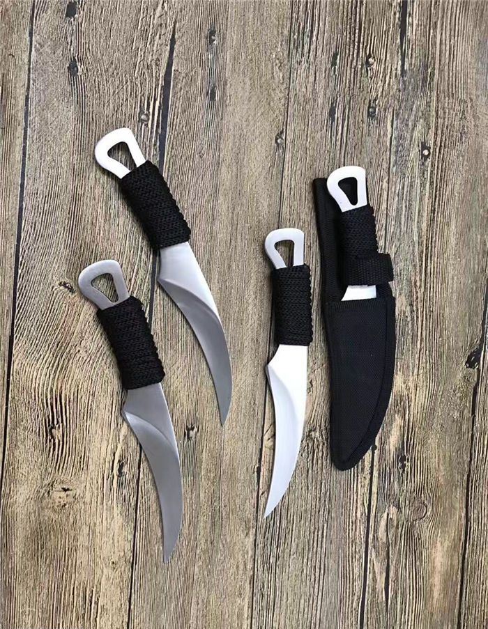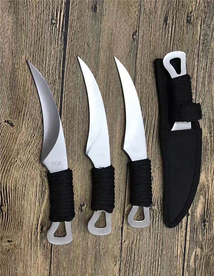 外贸版狐狸小镰刀 全 长: 21.5cm 刃 长: 11.5cm 刃 宽: 3.2cm(最宽处) 柄 长: 10cm 刃 厚: 0.4cm 刃 材: 5Cr13Mov 硬 度: 56RHC(高硬度) 净 重: 125克(含套) 表 面: 砂光 柄 材: 绑绳子 其 他: 尼龙套