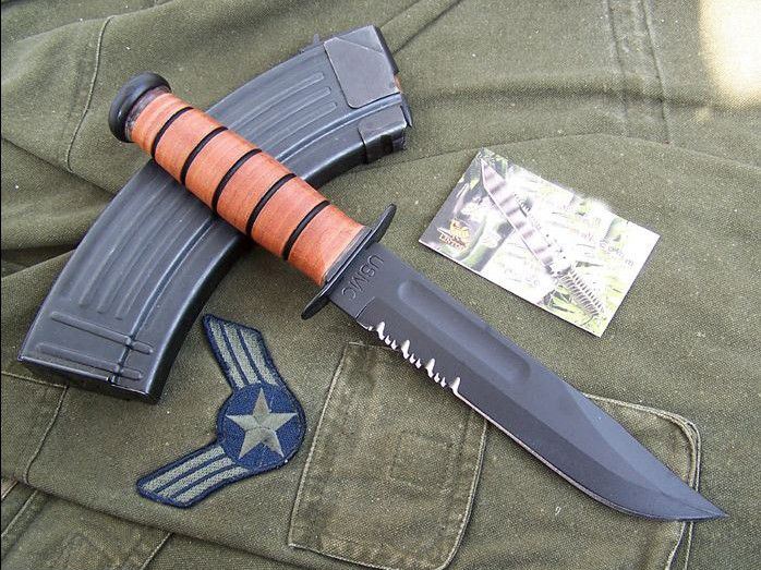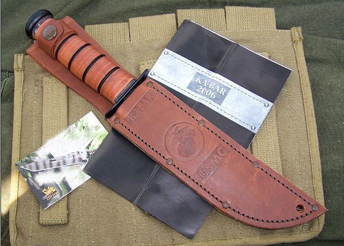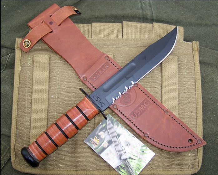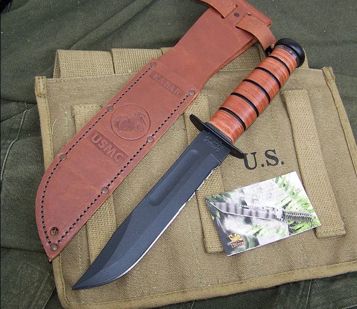 卡巴Kabar1218 全长:30.1厘米 刃长:17.8厘米 刃厚:0.4厘米 硬度:56-57HRC 重量:320克 刃材:1095高碳钢 柄材:压缩牛皮缠绕 品牌:美国 产地:美国 刀鞘:天然牛皮 Kabar1218是1217的带齿版。为广大爱好者提供了更广泛的选择。