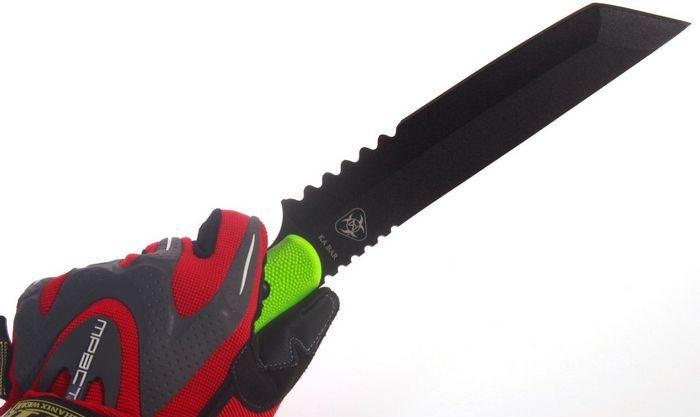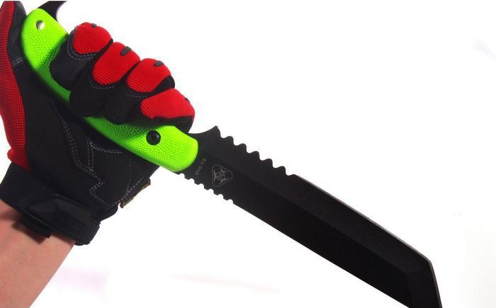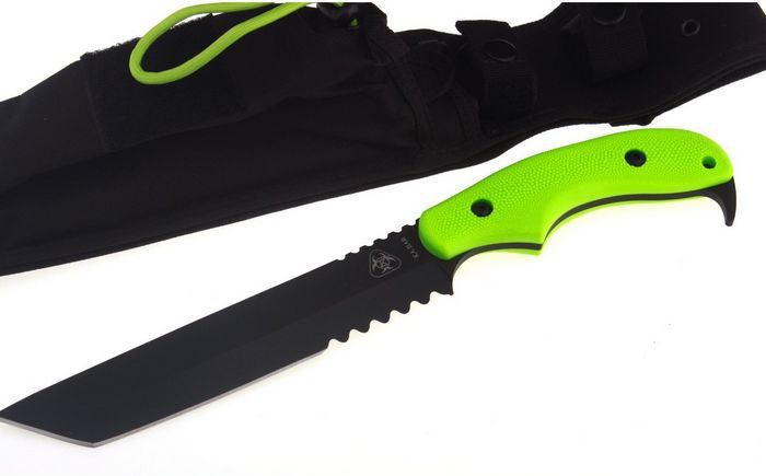 卡巴Kabar5700僵尸系列战术直刀 刃材:SK5高碳钢 柄材:GFN-PA66 全长:33.5厘米 刃长:19.5厘米 刃厚:0.56厘米 硬度:53-55HRC 重量:454克 品牌:美国 产地:美国 刀鞘:原厂尼龙刀鞘 附件:项链刀 其他:黑色手柄贴片、螺丝