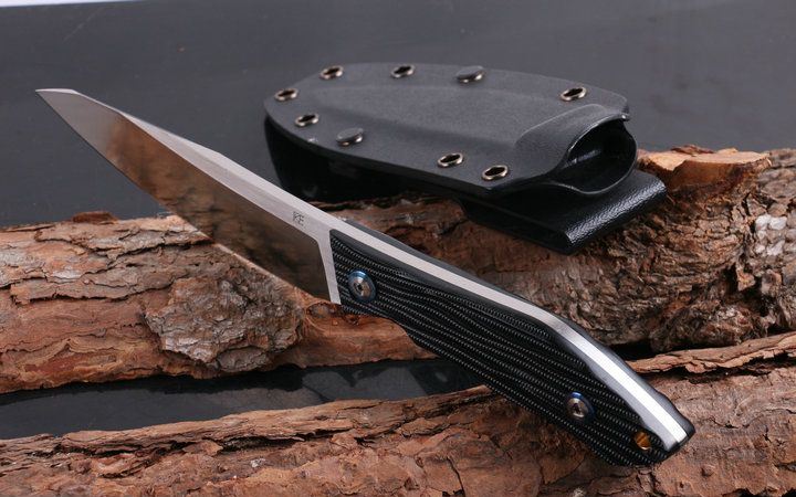 逍遥者D2直刀 全长:24cm 刃长:12cm 刃厚:0.43mm 刃宽:3.4cm 柄长:12.0cm 刃材:D2 刀重:185克 总重:305克 表面:精细沙光 柄材:高密度防滑纹G10 硬度:60C(真空处理) 刀鞘:K鞘(高硬度刀套) 包装:原厂礼品盒