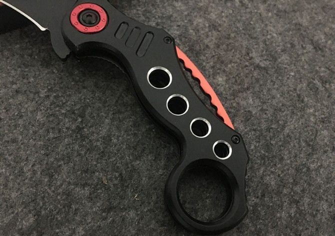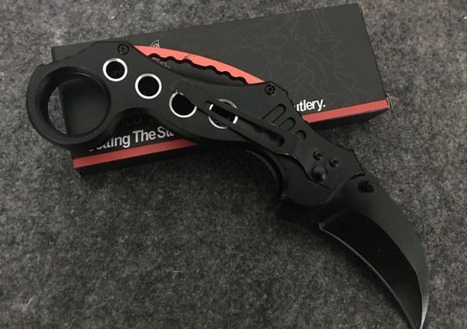 黑魔战术快开爪刀 全 长:190mm 刃 长:65mm 柄 长:135mm 刃 宽:27mm 刃 厚:2.7mm 刃 材:5Cr13 重 量:140g(含包装) 硬 度:56HRC 表 面:镀黑 柄 材:G10 锁 型:线锁 其 他:彩盒