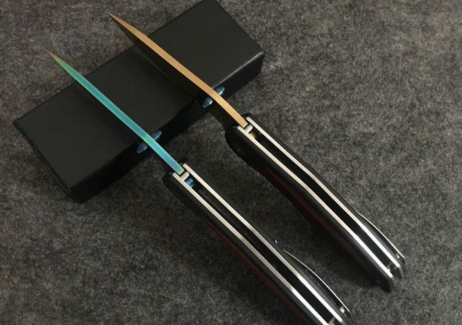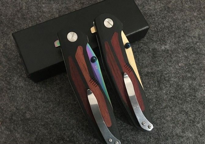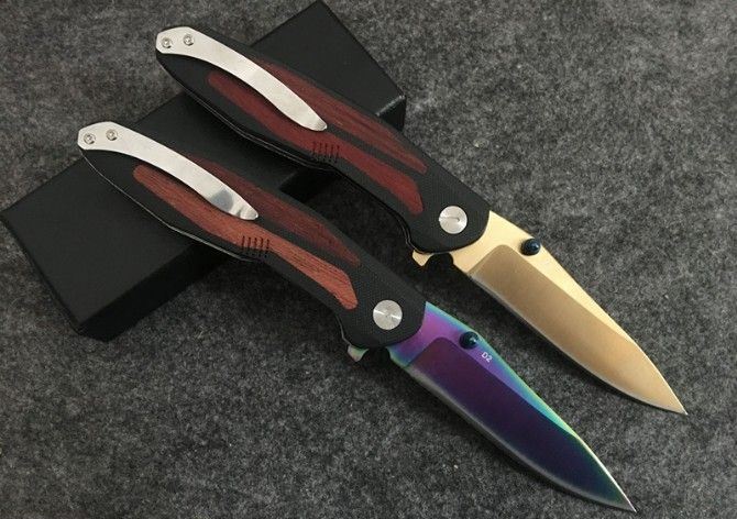野鲸战术折刀(金、彩) 全 长: 22.5cm 刃 长: 9.2cm 刃 宽: 2.5cm(最宽处) 闭 合: 12.8cm(柄长) 刃 材: 440C 硬 度: 57 表 面: 彩钛和金色 刃 厚: 0.3cm 柄 厚: 1.5cm 柄 材: 红木 净 重: 150克 包 装: 原装黑盒