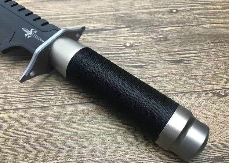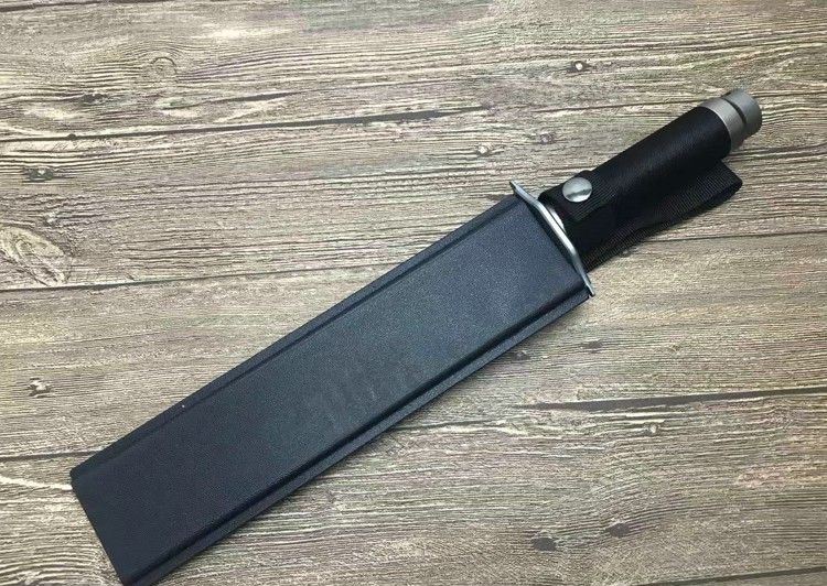 微技术邪神第二代十字军刀 全 长:38.5CM 刃 长:25CM 柄 长:13.5CM 刀 厚:0.58CM 刃 面:黑钛 毛 重:约600克(含刀鞘) 钢 材:9cr18mov钢 硬 度:59HRC(真空油冷热处理) 刀 柄:绝缘强化塑胶 刀 鞘:K鞘