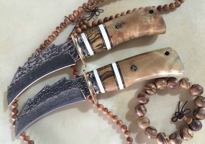 龙爪大马士革、手工非常精致哟,刀刃钢材用大马士革钢制作