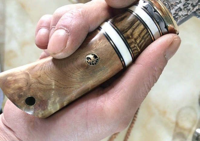 手柄材料:铜片 白骨 白影 制作打磨而成