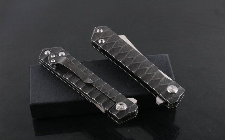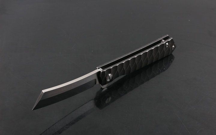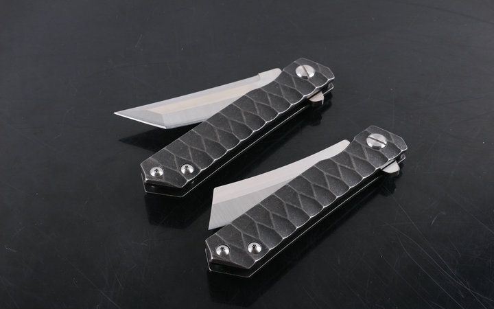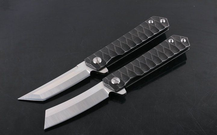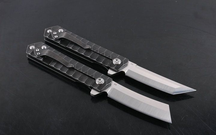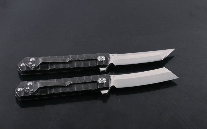 钢锁必刹折刀 全长:20.2cm 刃长:9.0cm 柄长:11.2cm 刃厚:0.38cm 刃宽:2.2cm 刃材:D2 柄材:电脑锣全钢防滑花纹 硬度:57HRC 净重:205克(含包装) 锁定:线锁,内置轴承 表面处:沙光 其他:原厂礼品盒,产品T头和剃刀两款,下单注明
