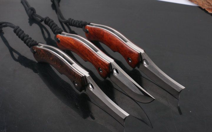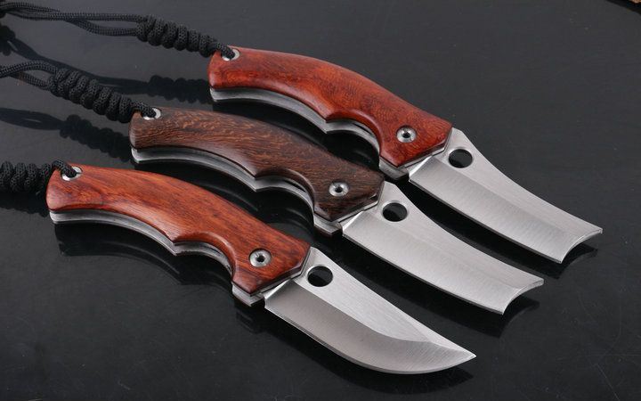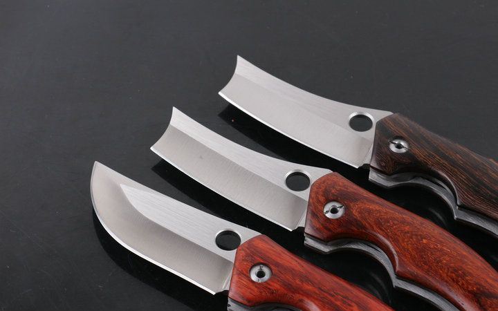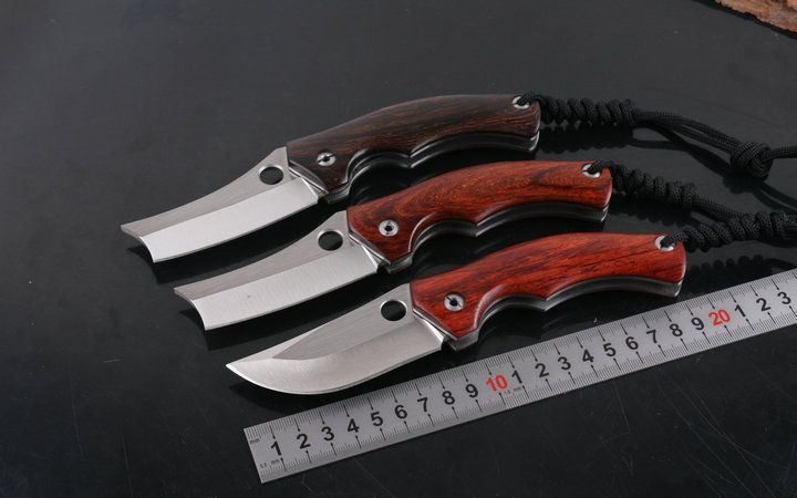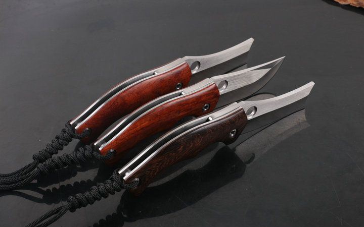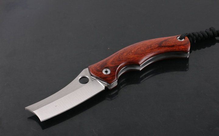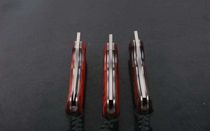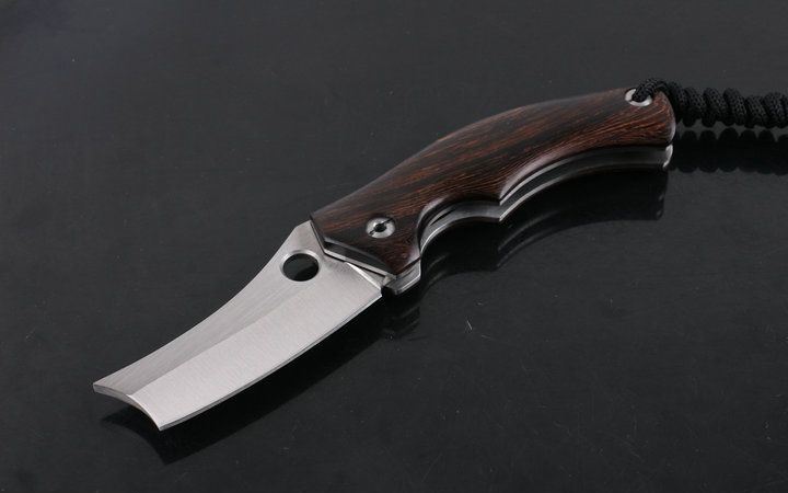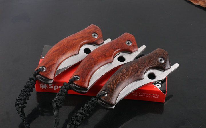 蜘蛛大犀牛折刀 全长:19.5cm 刃长:7.8cm 柄长:11.7cm 刃厚:0.4cm 刃宽:3.4cm 刃材:7CR15MOV 柄材:黑檀木和红酸枝木 硬度:57HRC 净重:200克(含包装) 锁定:无锁 表面处:精细沙光 其他:原厂彩盒。再送30CM救生绳,A黑檀木平头,B红酸枝木平头,B红酸枝木D头,下单注明