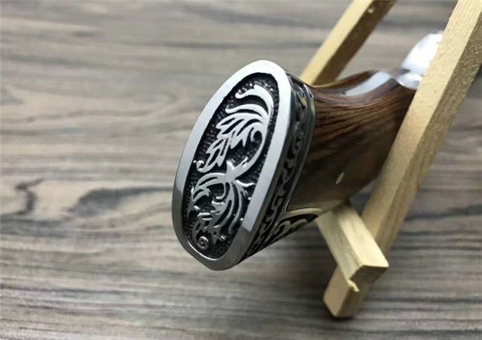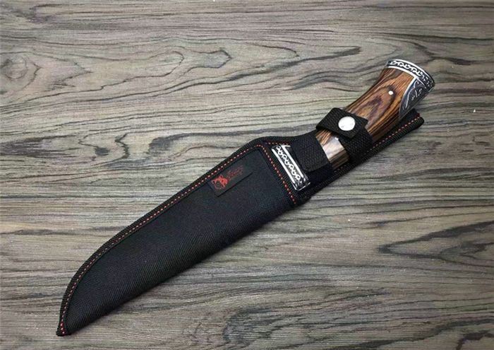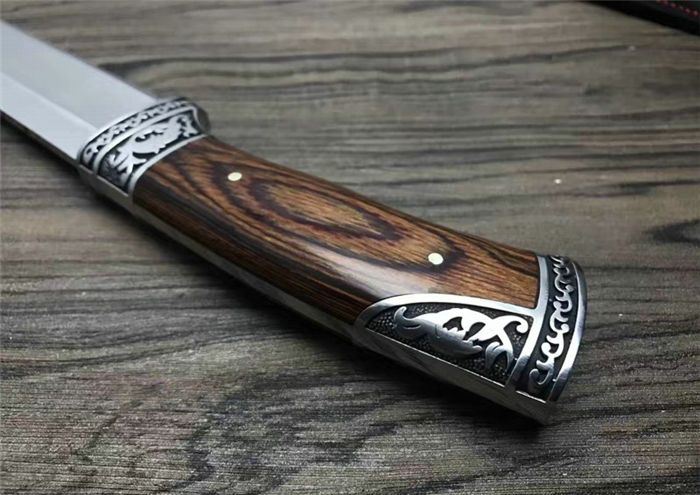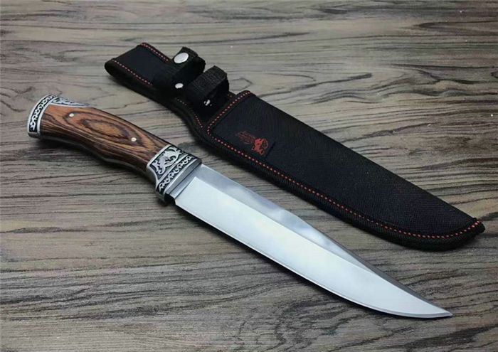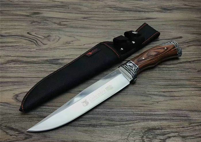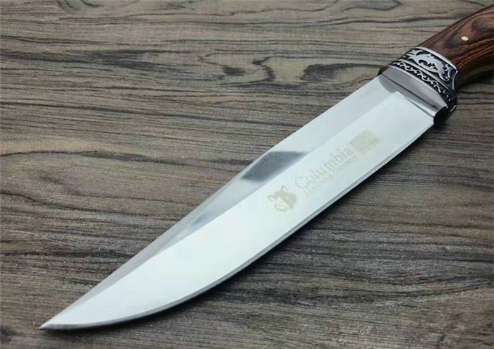 哥伦比亚SA58直刀 全 长:30.8cm 刃 长:17.2cm 刃 宽:3.4cm(最宽处) 刃 厚:3.8mm 柄 长:13cm 表 面:拉丝+镜光 刃 材:3CR13 硬 度:57HRC 柄 材:双钢头雕花+进口彩木 重 量:368克(含包装) 包 装:尼龙套