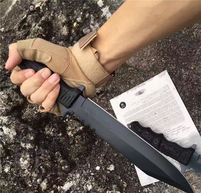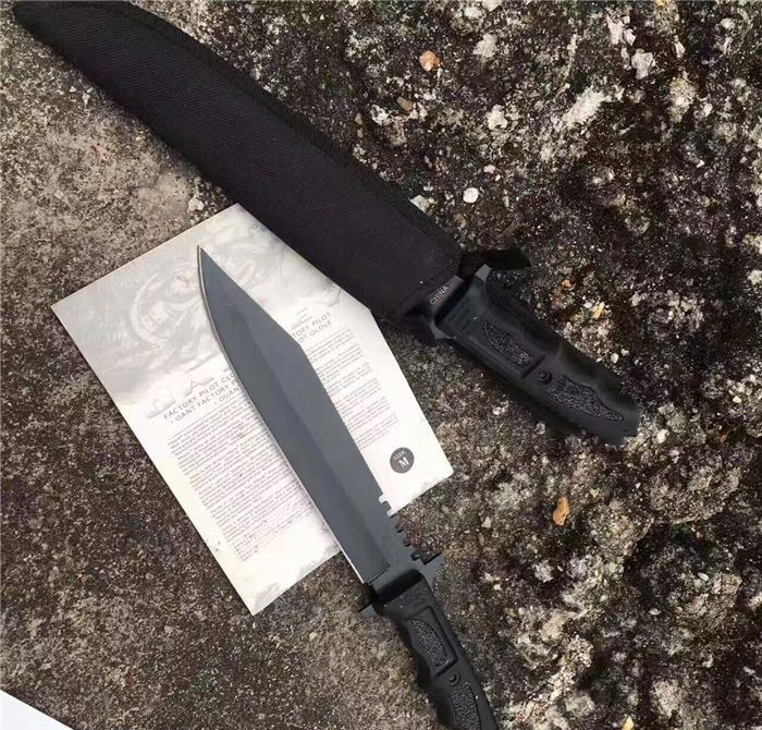 尖嘴夜魔战术直刀 全 长:355mm 刃 长:180mm 柄 长:130mm 刃 宽:35mm 刃 厚:4.3mm 刃 材:5Cr13Mov 重 量:300g(含包装) 硬 度:57HRC 表 面:镀金 柄 材:ABS塑胶 其 他:配尼龙战术刀套