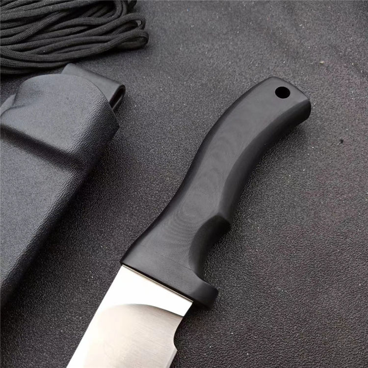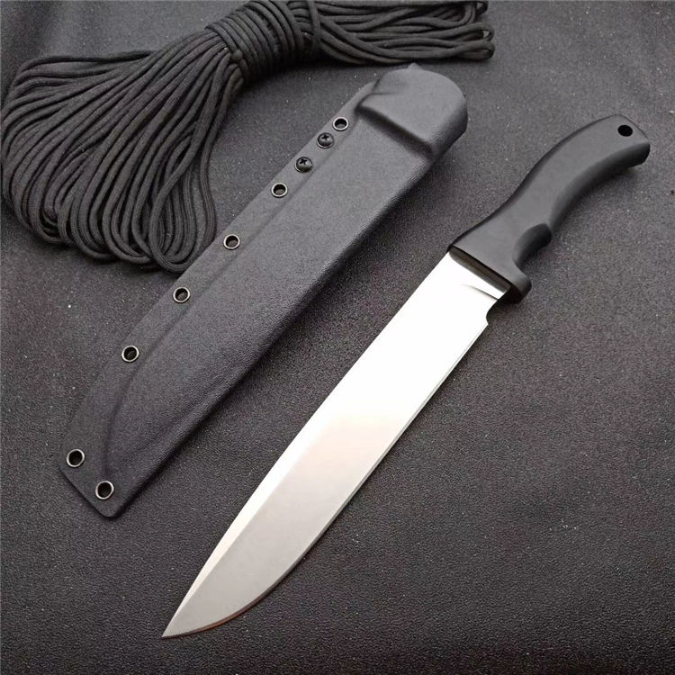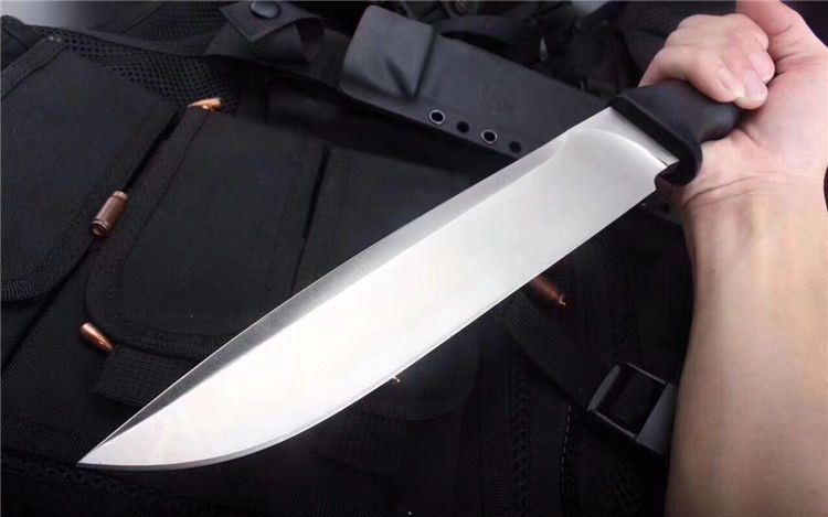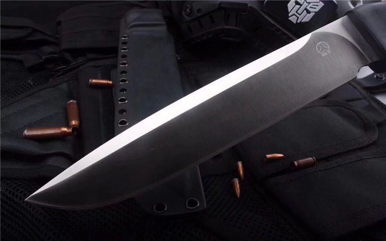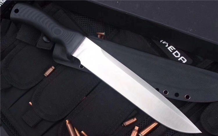 博尔特疯狗DC53直刀 全长:367mm 刃长:237mm 刃厚:6mm 柄长:131mm 刀最宽处:41mm 表面:大平魔细砂光处理,超强立体感刃线 类型:以锋利度、韧性保存度最出色 开刃方式:二次开刃 刃材:DC53(线切割开料) 热处理方式:真空淬油热处理 硬度:61HRC 柄材:G10护手柄+管钉 包装:精美黑礼盒+护刀油+伞绳 毛重:830g)(含包装) 净重:430g 刀鞘:进口K鞘+带扣