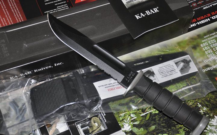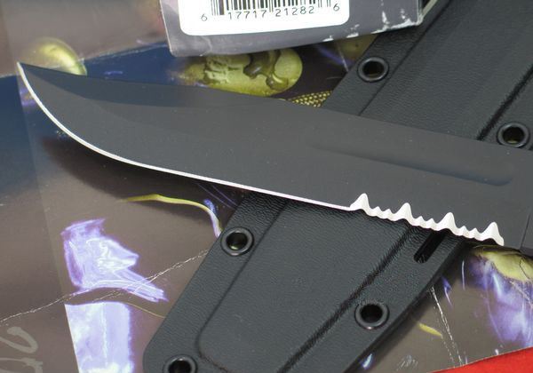卡巴Kabar1282切割冠军战术直刀 刃材:D2工具钢 柄材:克拉通材质 全长:30.2厘米 刃长:17.8厘米 刃厚:0.42厘米 硬度:59-60HRC 重量:380克 品牌:美国 产地:美国 刀鞘:原厂刀鞘