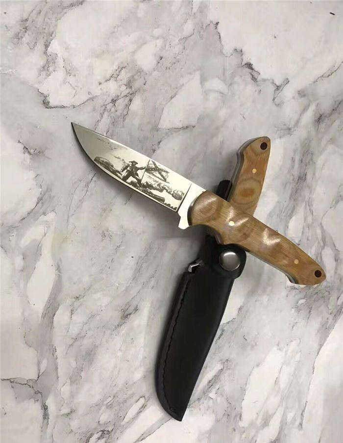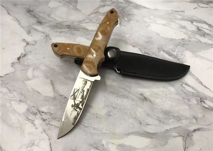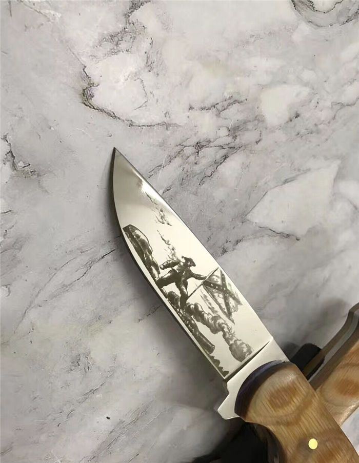其 他: 镜光的刀身镭射战斗场面的图案。一体龙骨结构,配牛皮刀套