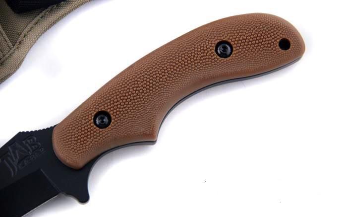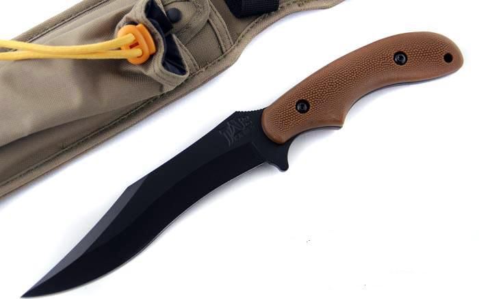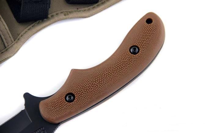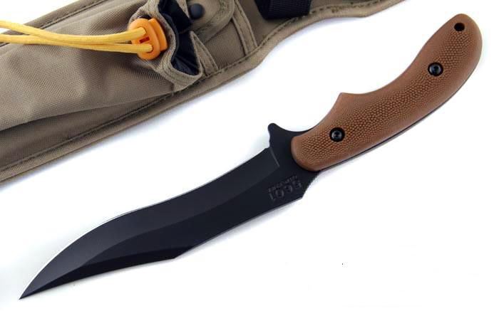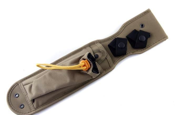 刃材:1095高碳钢 柄材:克拉通材质 全长:32.3厘米 刃长:18厘米 刃厚:0.5厘米 硬度:56-58HRC 重量:385克 品牌:美国 产地:美国 刀鞘:原厂尼龙刀鞘 附件:项链刀