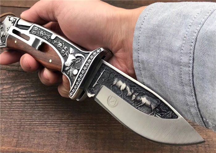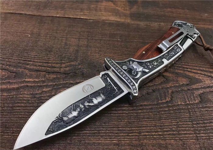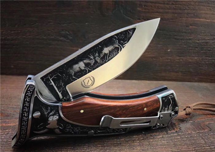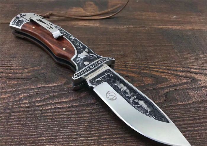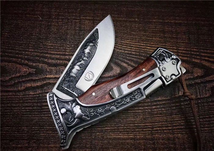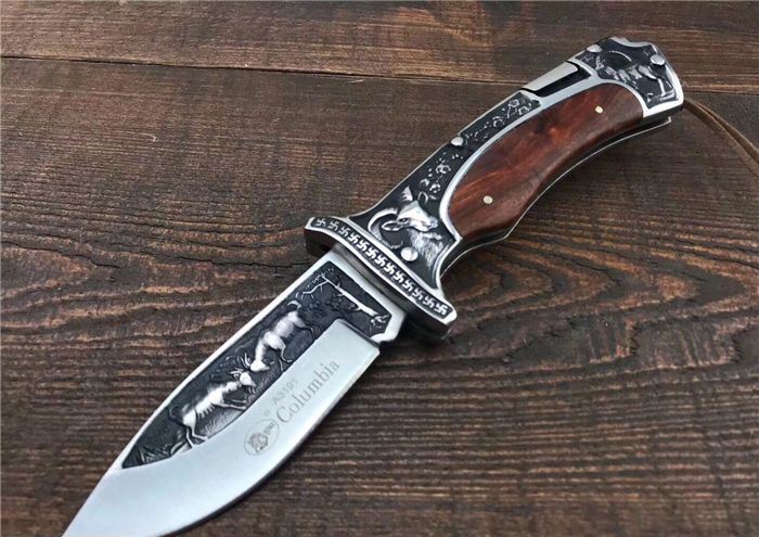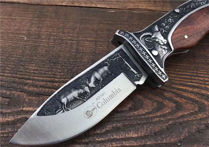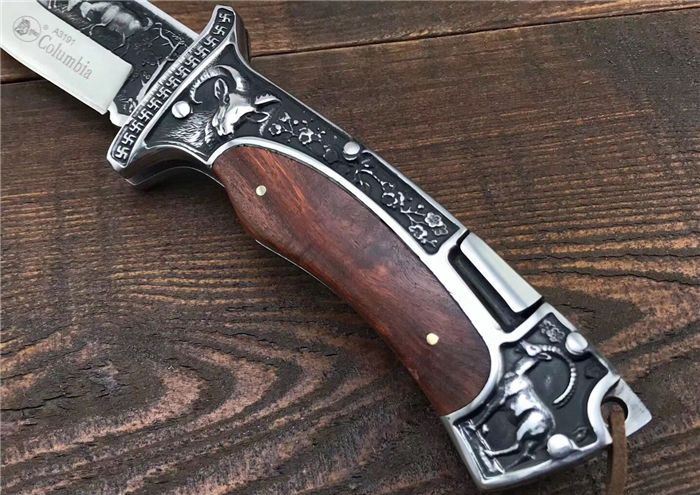 哥伦比亚A3191战术折刀 全 长:22.7cm 刃 长:10cm 柄 长:12.7cm 刃 宽:3.5cm 刃 厚:3cm 刃 材:7Cr13Mov 重 量:300g(含包装) 硬 度:58HRC 表 面:雕刻 柄 材:双钢头雕刻+黑檀 锁 型:背锁 包 装:纸盒+真皮套 备 注:带腰夹