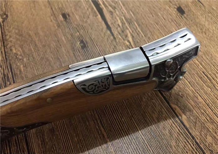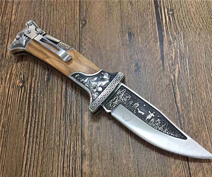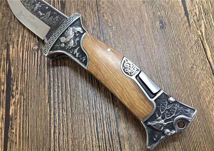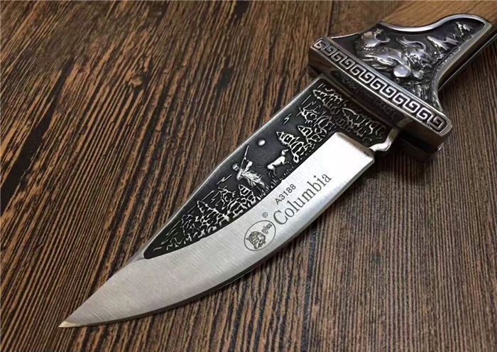 哥伦比亚A3188战术折刀 全 长:22.7cm 刃 长:10cm 柄 长:12.7cm 刃 宽:3.5cm 刃 厚:3cm 刃 材:7Cr13Mov 重 量:300g(含包装) 硬 度:58HRC 表 面:雕刻 柄 材:双钢头雕刻+黑檀 锁 型:背锁 包 装:纸盒+真皮套 备 注:带腰夹