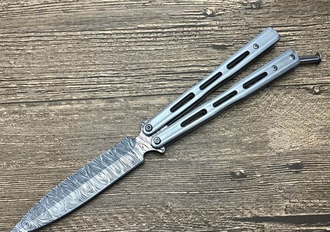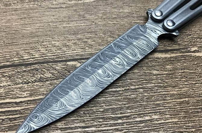 闪电纹甩刀 全 长:226mm 刃 长:93mm 柄 长:121mm 刃 宽:19mm 刃 厚:2.8mm 刃 材:3Cr13Mov 重 量:171g(含包装) 硬 度:55HRC 表 面:腐蚀 柄 材:钢柄 其 他:配彩盒